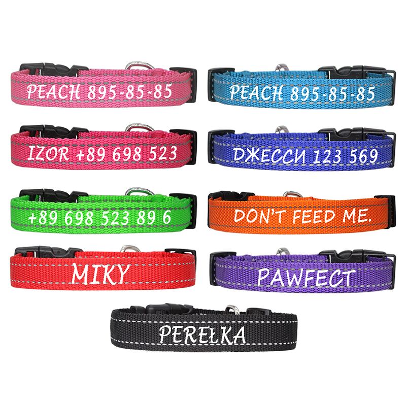 パーソナライズされたナイロン犬の首輪反射 ID タグ ペットの猫の名前カスタマイズされたアクセサリー紛失防止小中大ピットブル