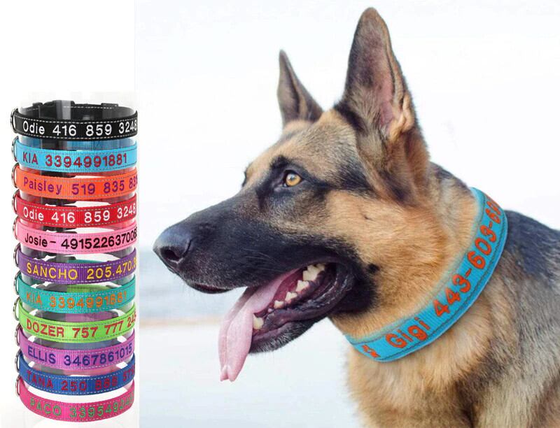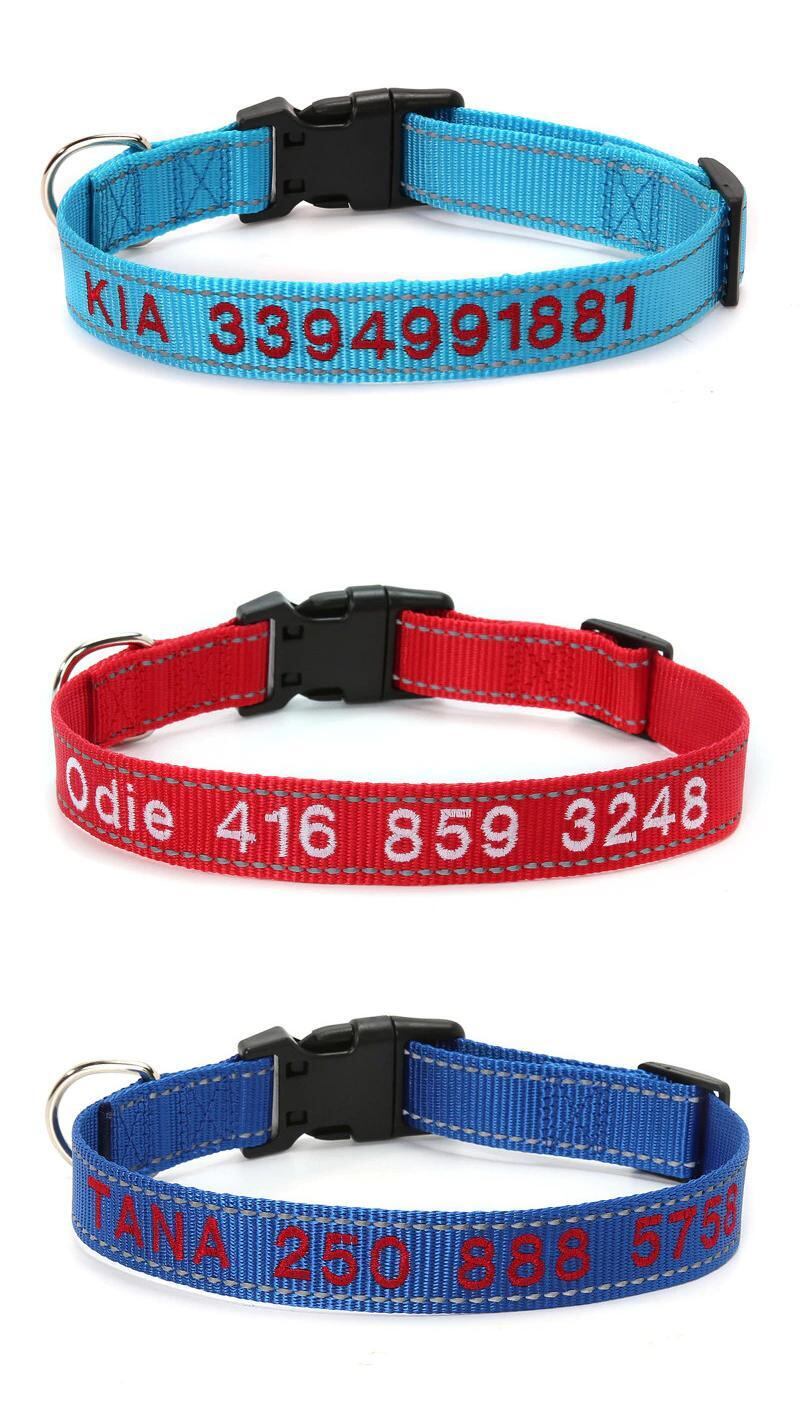 反射ナイロン犬の首輪刺繍カスタムパーソナライズされた猫の首輪ペットの名前のネックレスミディアムラージペットの子犬のアクセサリー