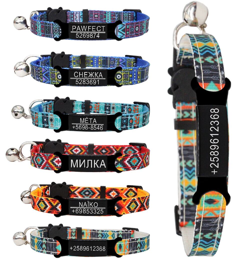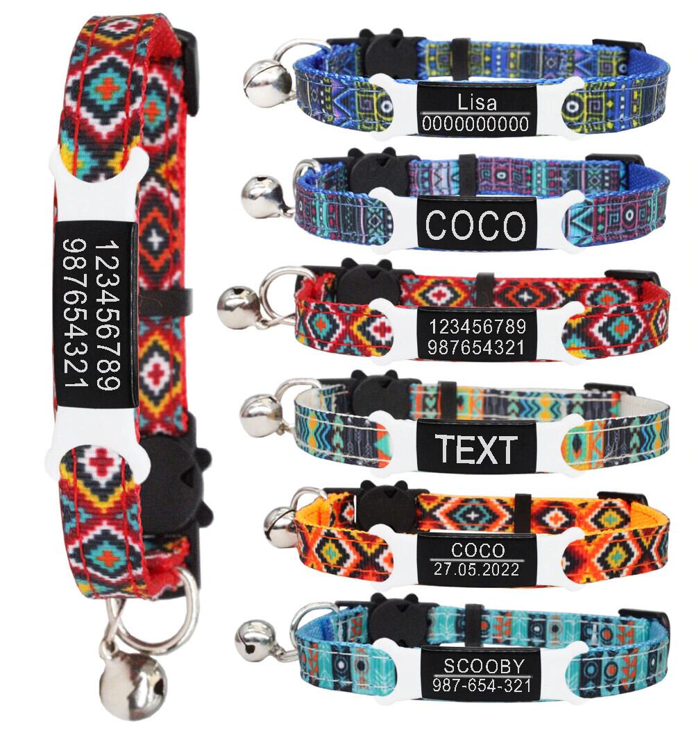 パーソナライズされた ID タグ 猫の首輪 ベル付き カスタム首輪 安全性 ブレイクアウェイ 調節可能なナイロン彫刻 小さな子猫のネックレス