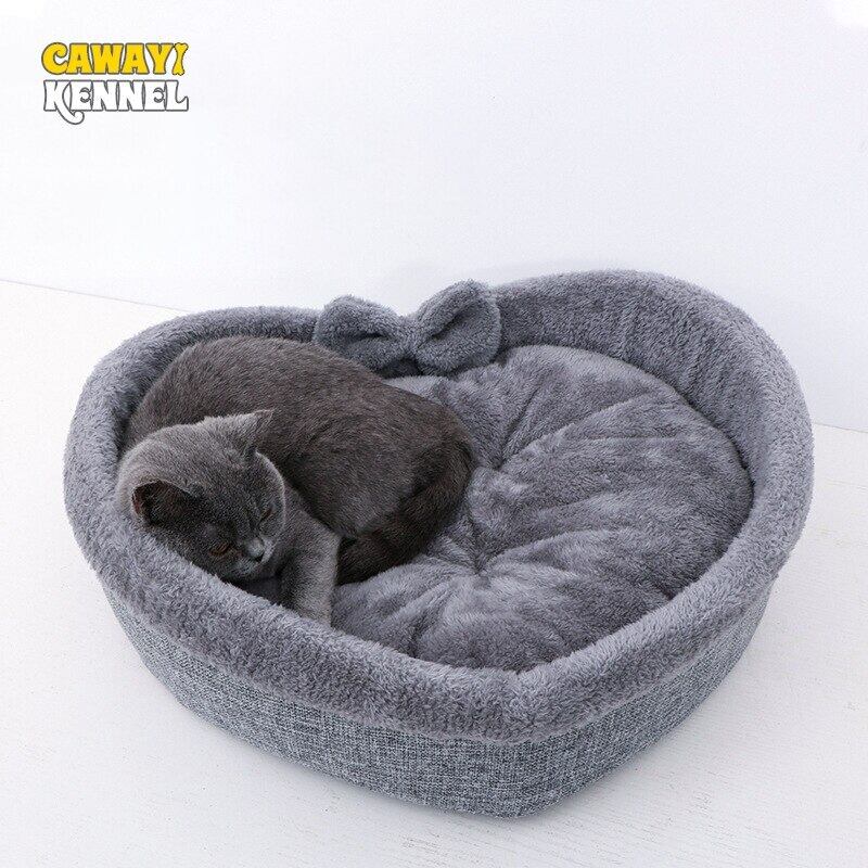 CAWAYI KENNEL ハート型 犬用ベッド ロング ぬいぐるみ ドーナツ ペットベッド 寝袋 ペットマット ソフトマット ペットハウス ソファ 小型犬 猫 D2408