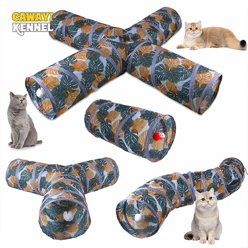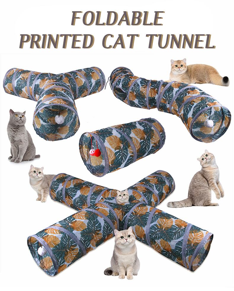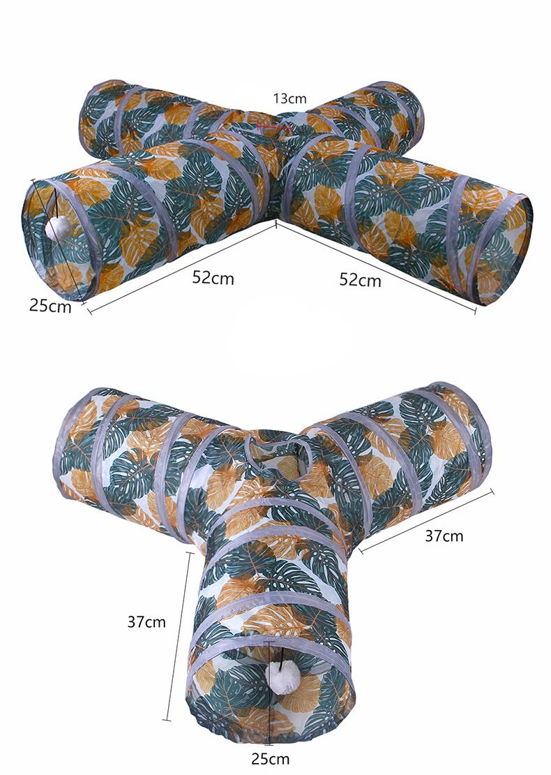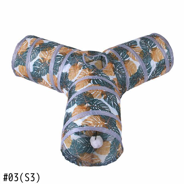 CAWAYI KENNEL ペットの猫のトンネル プリント Y 型 折りたたみ可能な穴 屋内 屋外 チューブ トンネル 猫 ペット おもちゃ 省スペース 猫 トレーニング おもちゃ