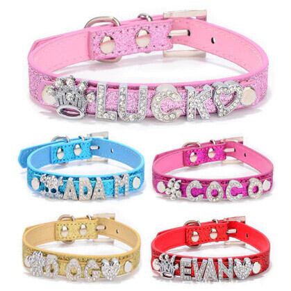 カスタム犬猫の首輪パーソナライズ文字名ラインストーン子犬小さな調節可能な首輪チャームチワワヨークシャー