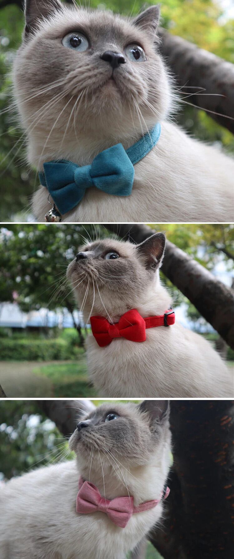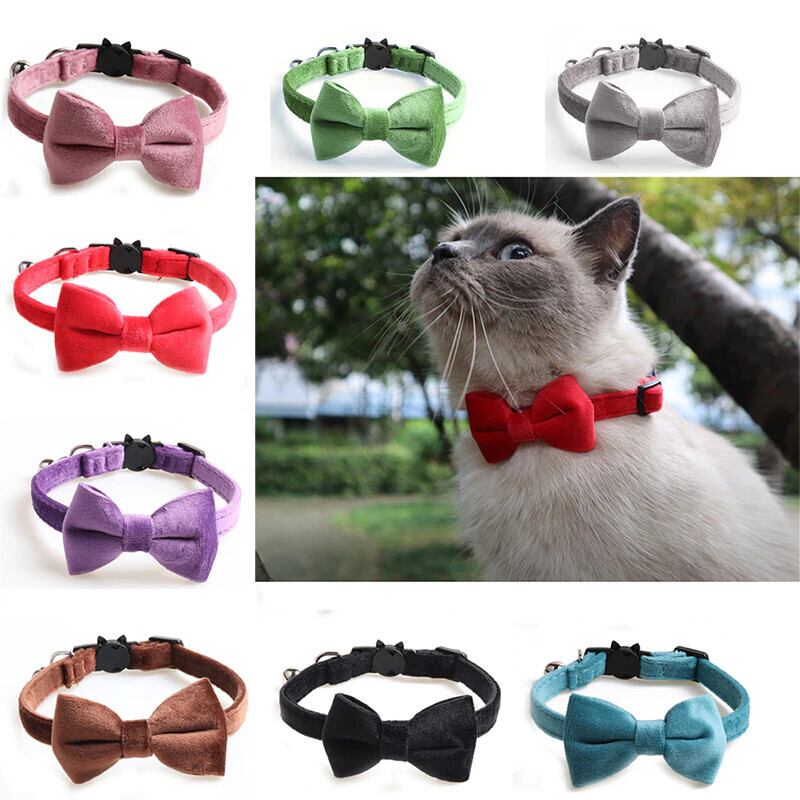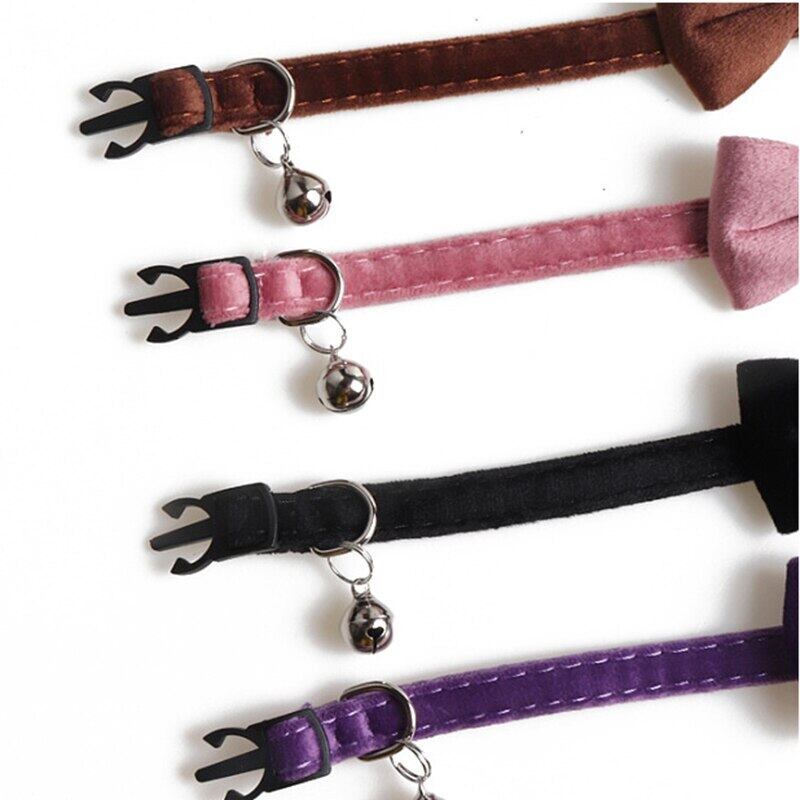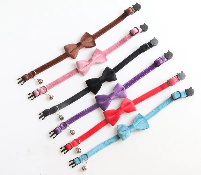 安全弾性ボウタイ猫の首輪とベル調節可能なバックル Gatos 蝶ネクタイ小型犬ソフト ベルベット ペット サプライヤー ベル固体