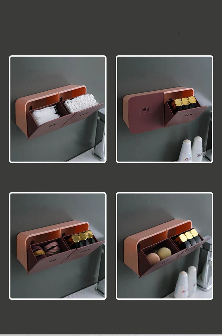 バスルームオーガナイザー綿パッド収納プラスチック綿棒ホルダー壁掛けタンポンコンテナ綿棒ホルダー化粧品オーガナイザー