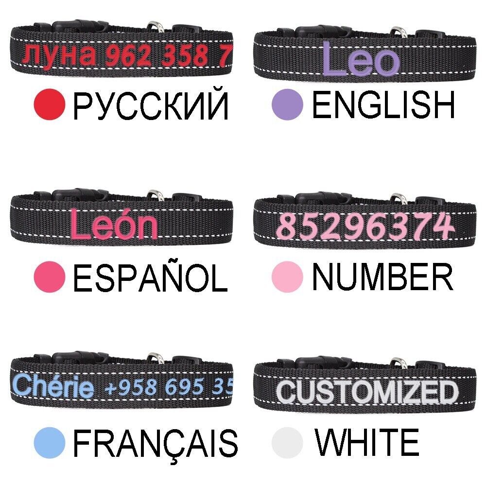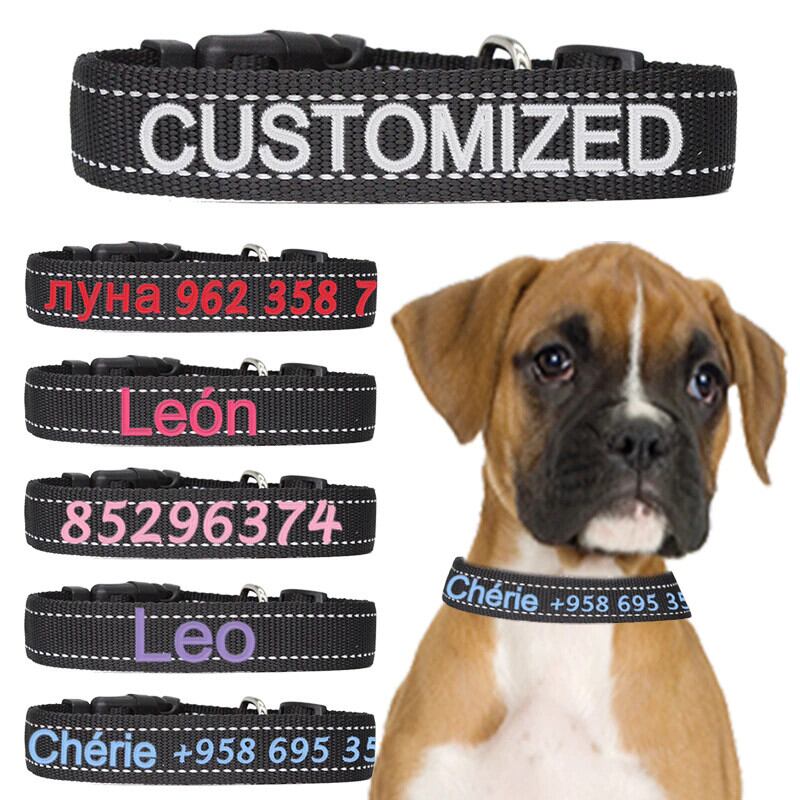 刺繍ナイロン犬の首輪反射パーソナライズされた猫の首輪カスタム名調節可能なネックレス中大ペット子犬