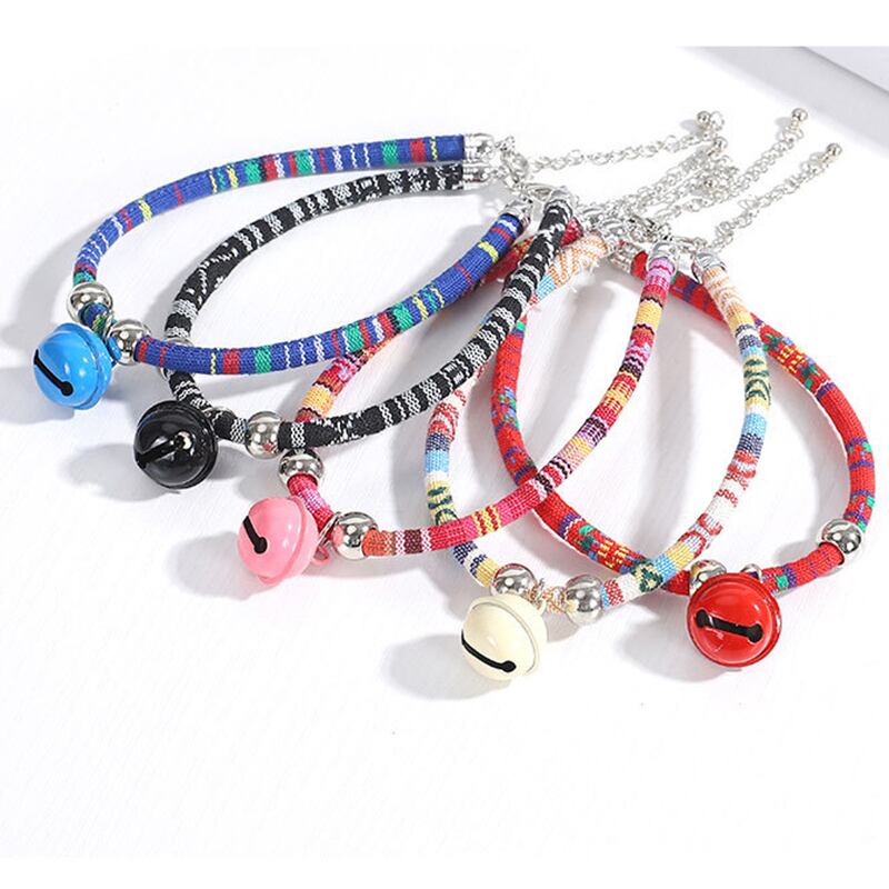 カラフルなナイロン猫の首輪ベル子猫ハーネス小型犬子犬アクセサリー首輪猫ベル無地