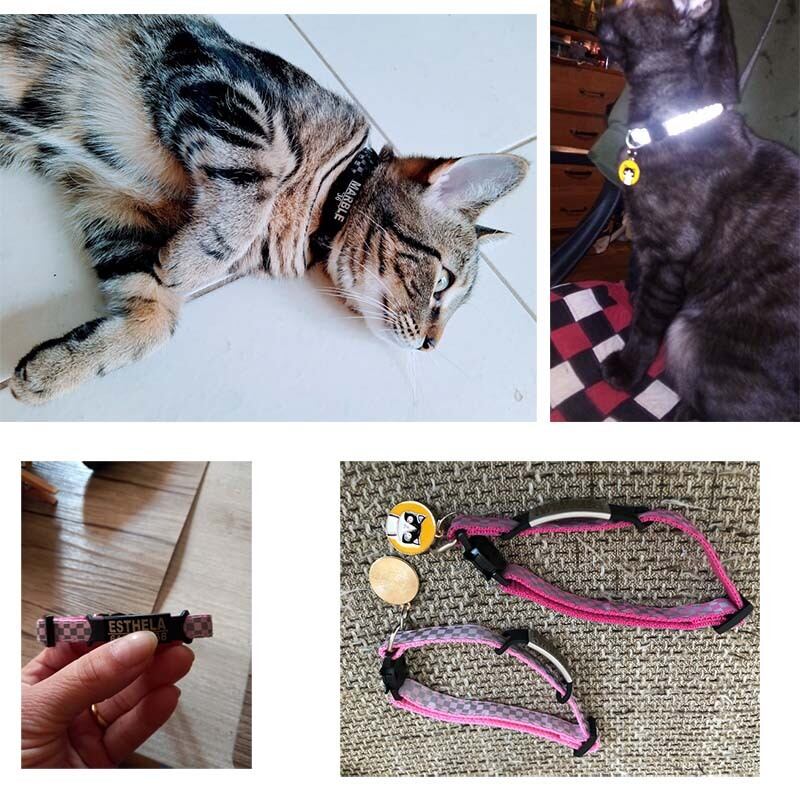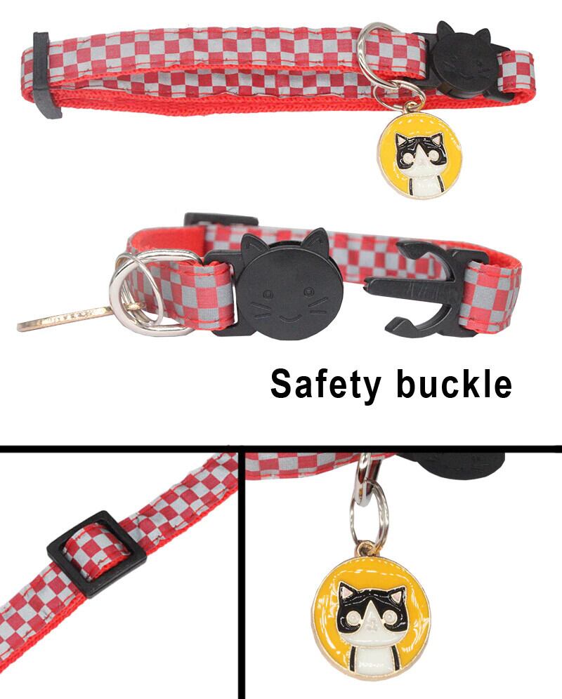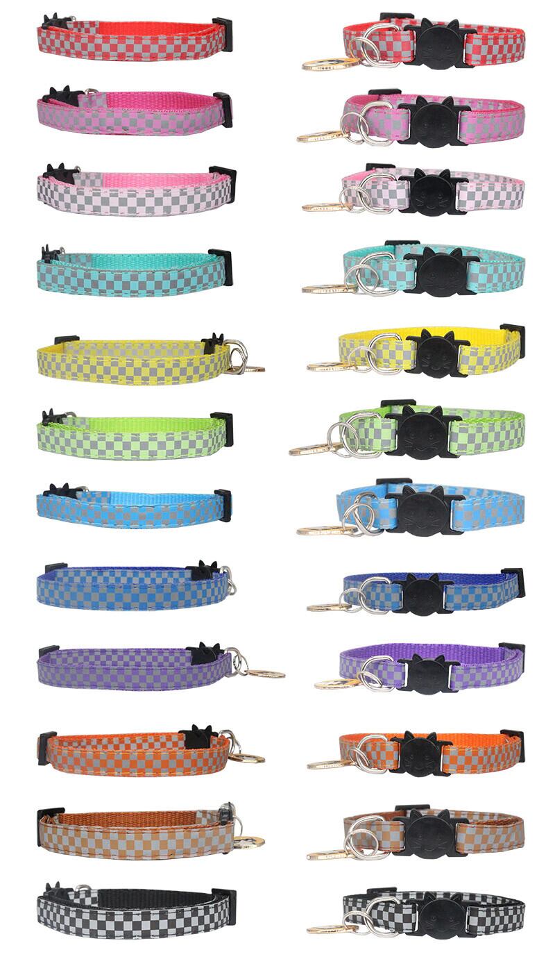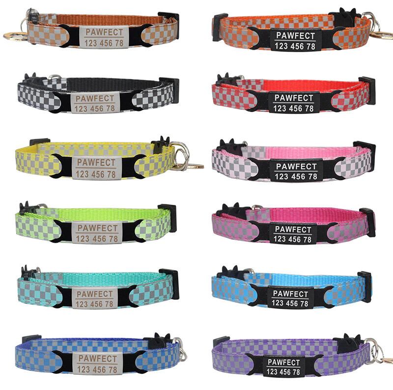 反射チェック柄ペットコラルカスタムパーソナライズID無料彫刻猫ナイロン調節可能な子犬子猫ネックレス