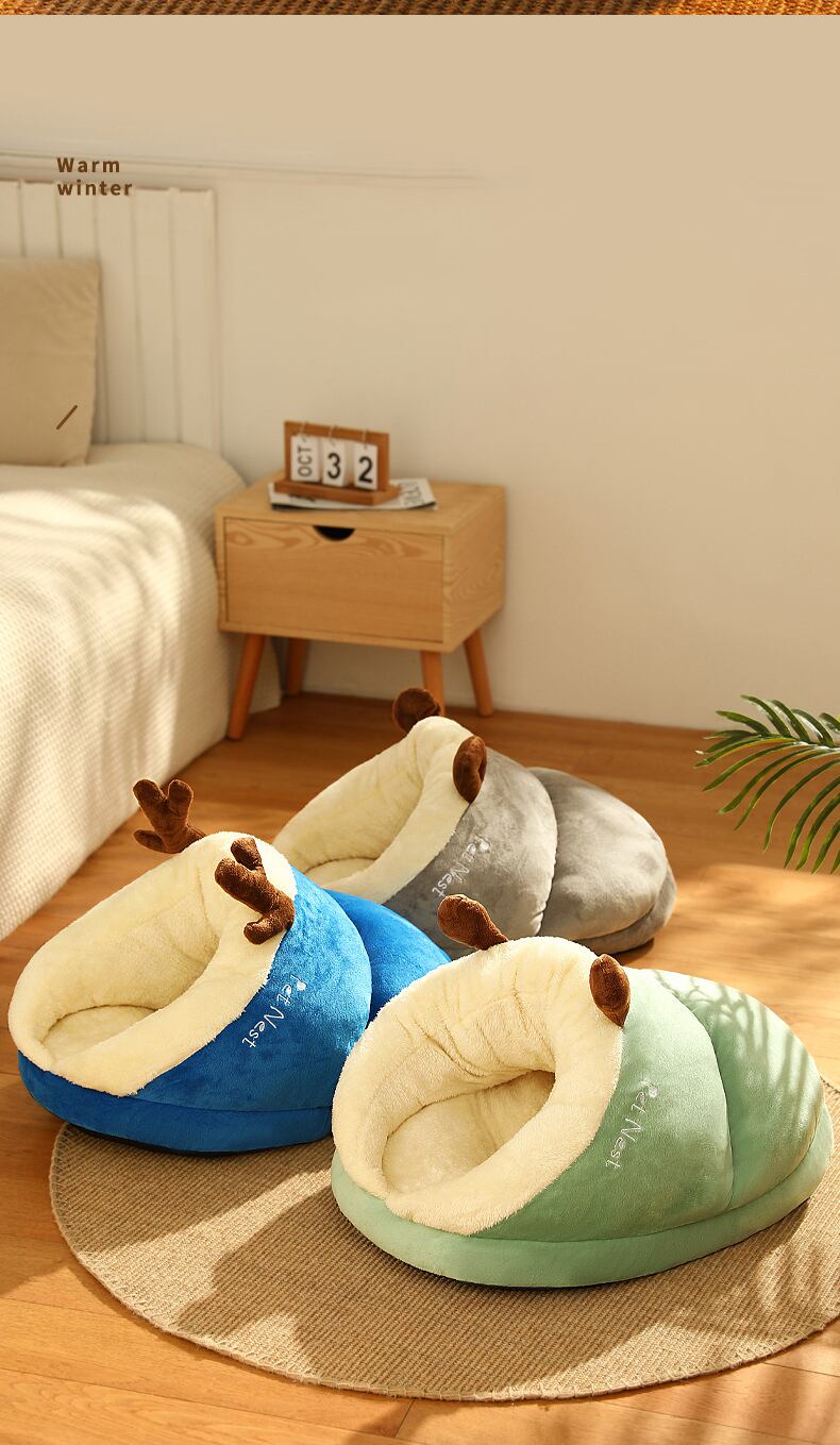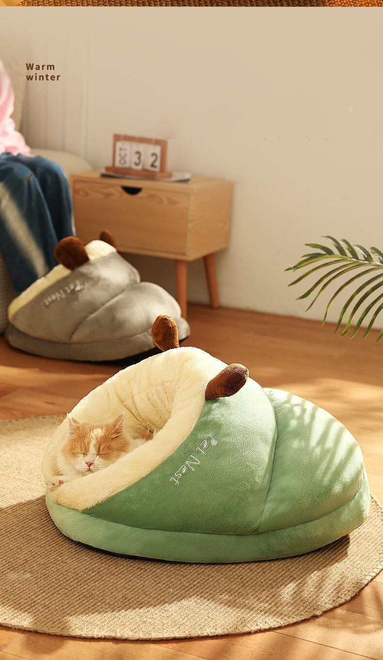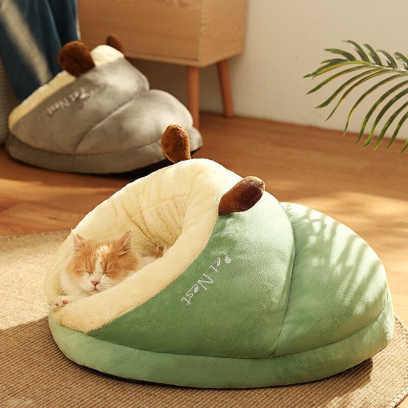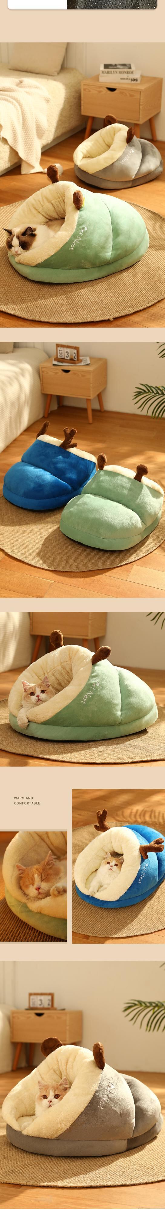 CAWAYI KENNEL かわいい猫ベッド 冬の暖かさ ぬいぐるみ ペットハウス 居心地の良い子猫 クッション 猫バスケット マット ハウス用品 小中猫
