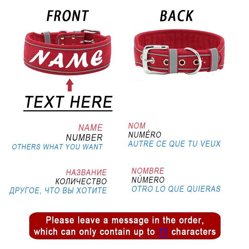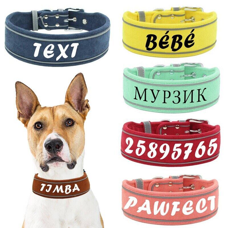 ワイド犬の首輪パーソナライズカスタマイズソフトレザーパッド入りネックレスペット ID プリント名首輪小中大犬
