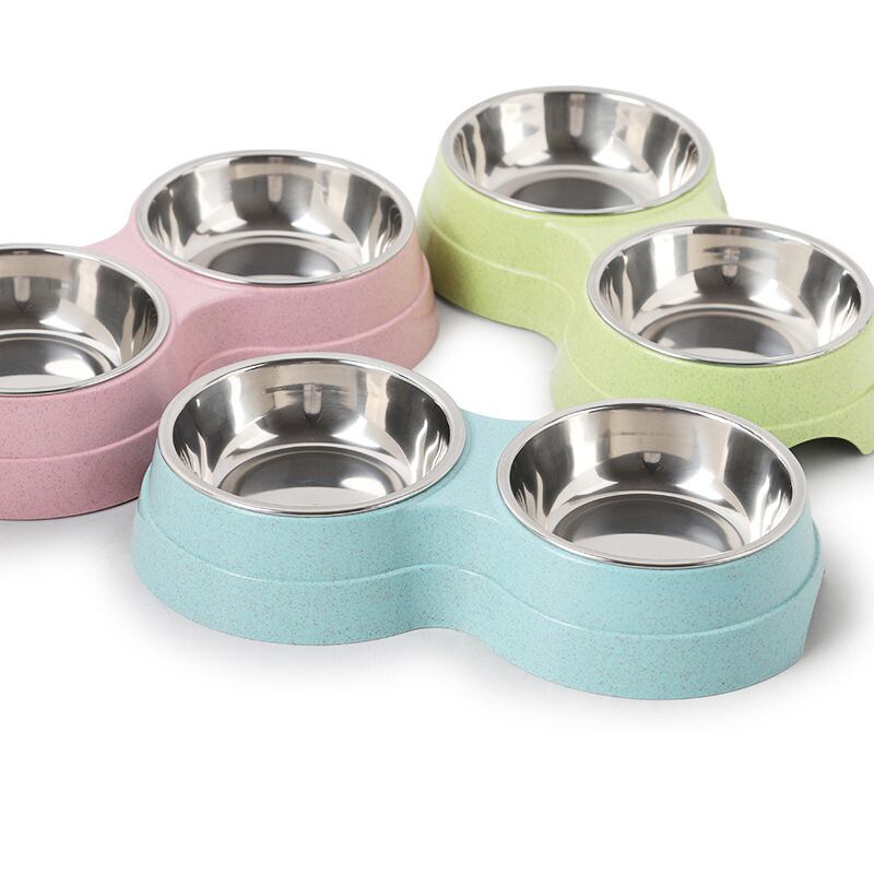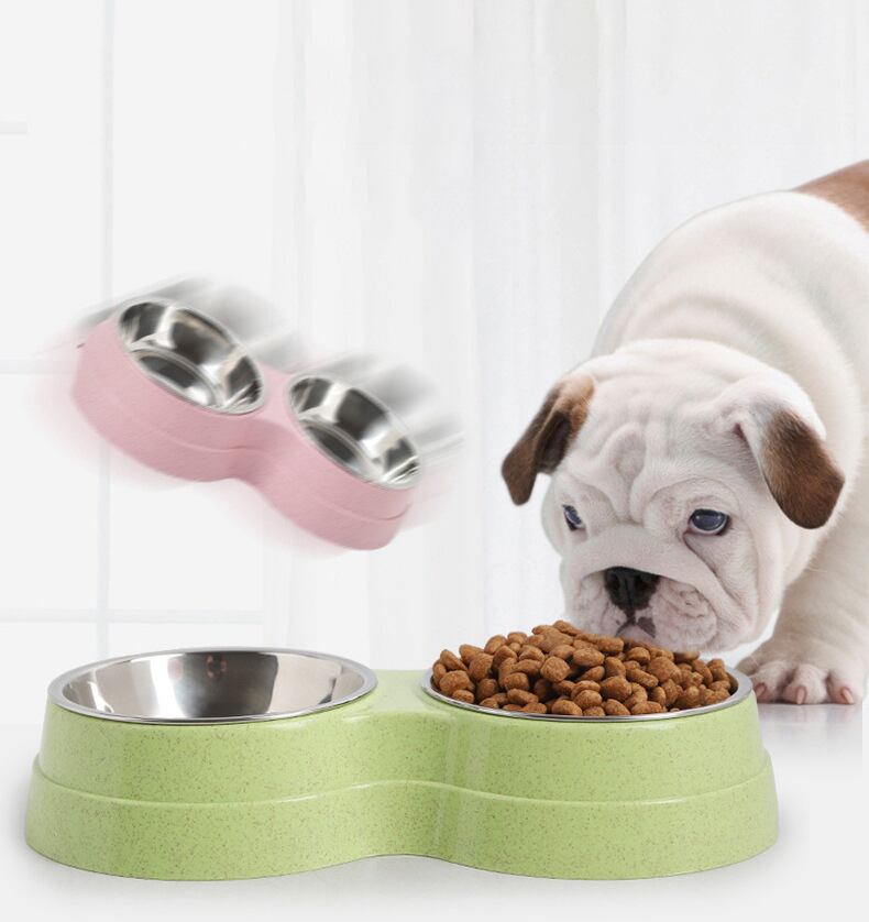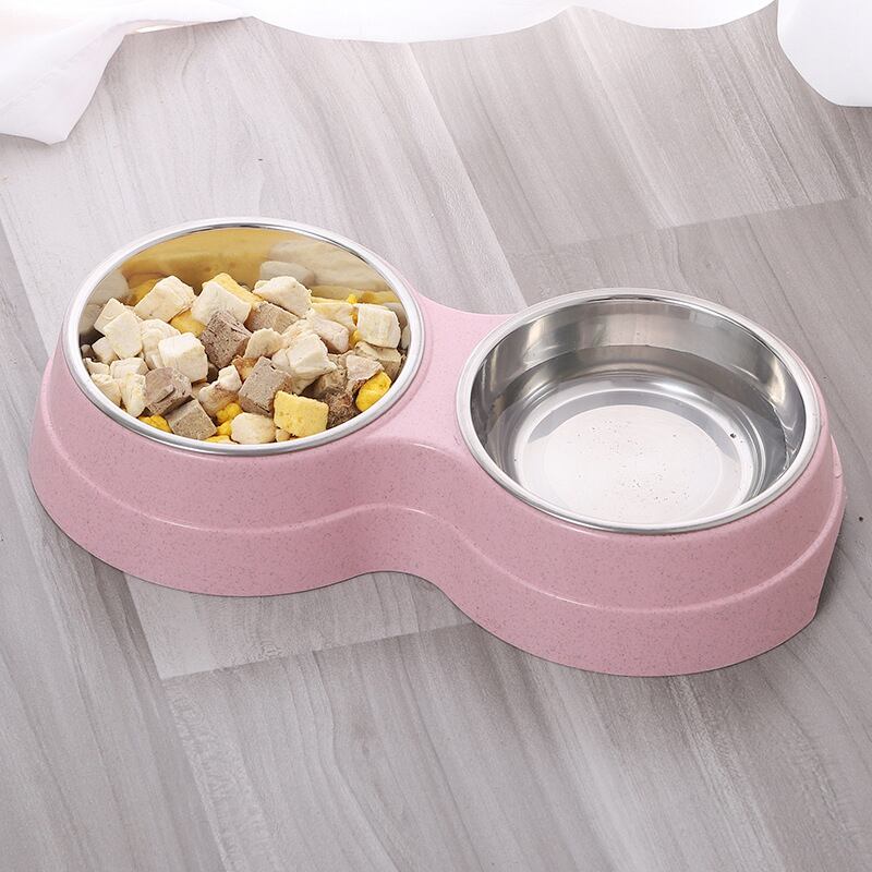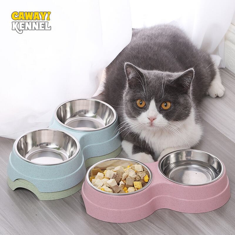 CAWAYI KENNEL 犬用フィーダー ドリンクボウル 犬 猫 ペットフードボウル ソリッドラウンド ツーインワン プラスチック ステンレススチール ボウル D2028