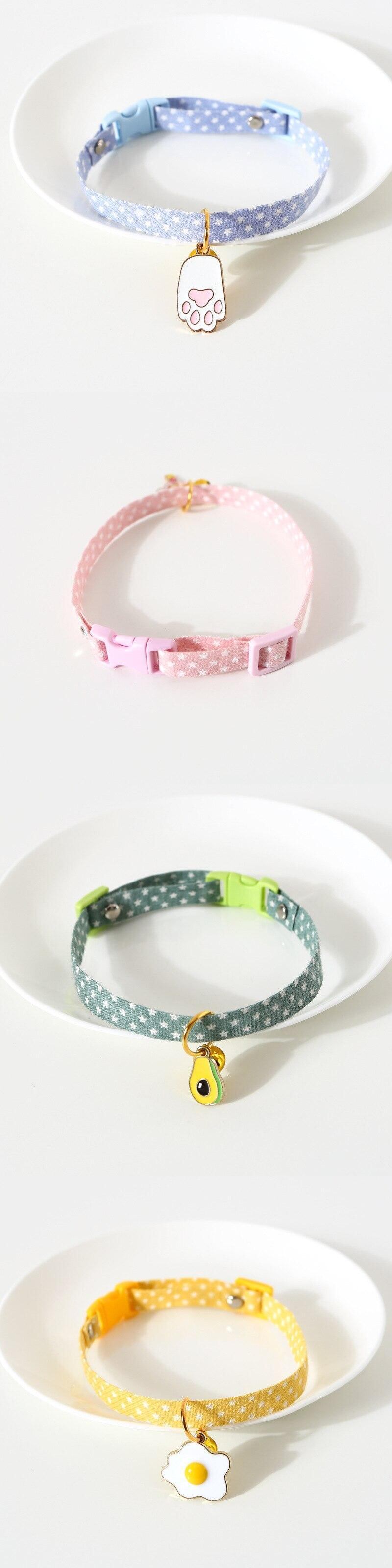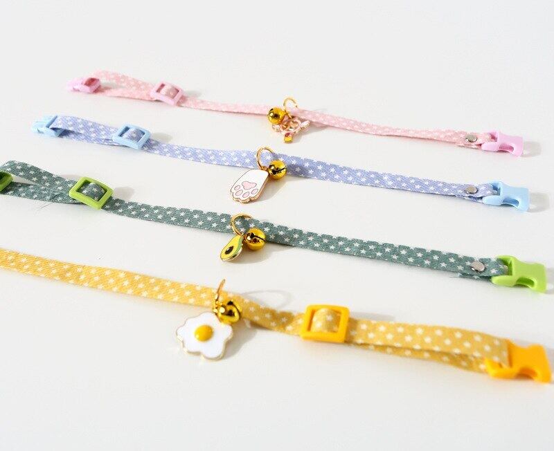ペットの猫の首輪と漫画のペンダントとベルかわいいネックレス調節可能な星の首輪格子縞の綿の首輪ペット用品