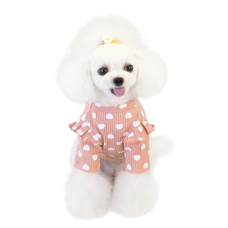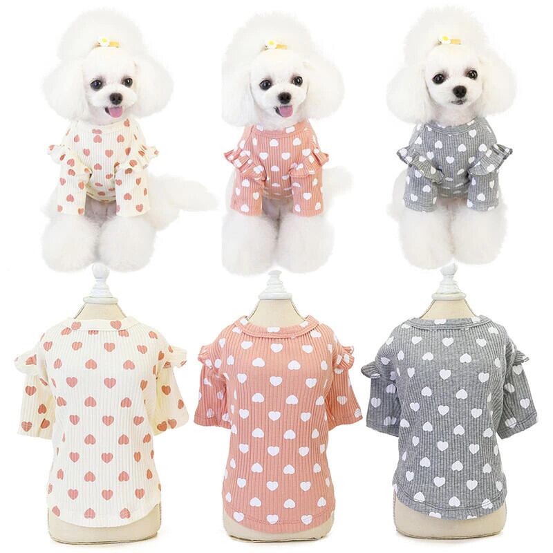 犬のハート服春秋ペット底入れシャツラブハート小中子犬チワワヨークシャーシー犬