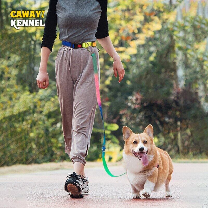 CAWAYI KENNEL ナイロン リーシュ ペット 犬 チェーン 牽引ロープ リード ウエストフリー ハンズロープ 防爆チェーン 大型犬
