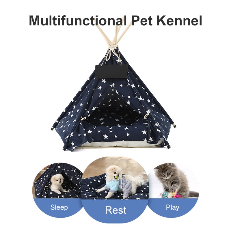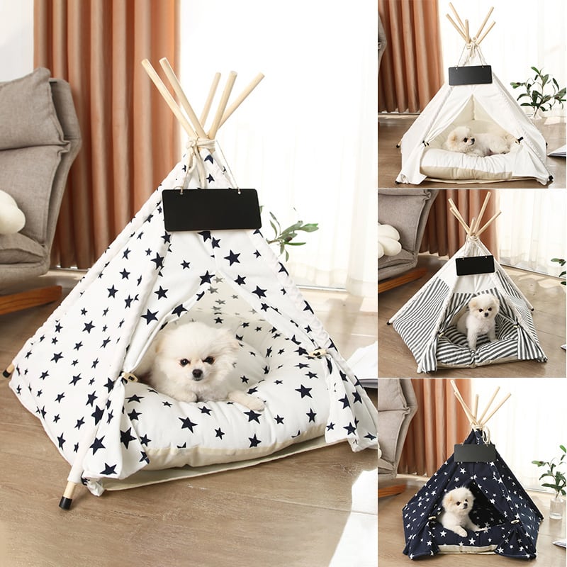 ペット テント ハウス 犬用ベッド 子犬 猫 屋内 屋外 テント クッション付き ポータブル 取り外し可能 洗える ティーピー 犬小屋 洞窟の巣