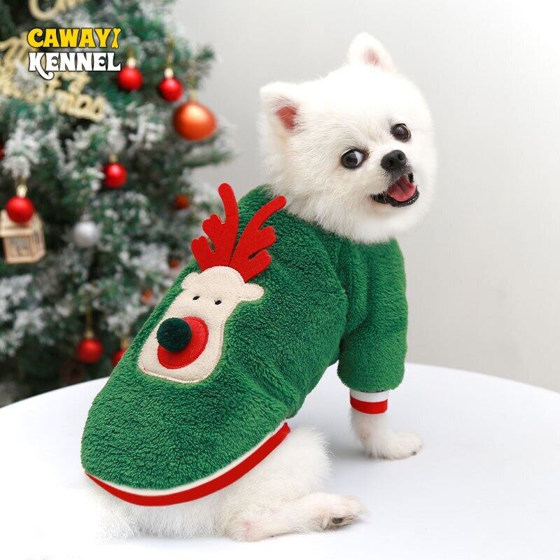 CAWAYI 犬小屋クリスマスペット犬服冬暖かいサンゴフリース犬パーカー小型犬子犬猫チワワペットコート