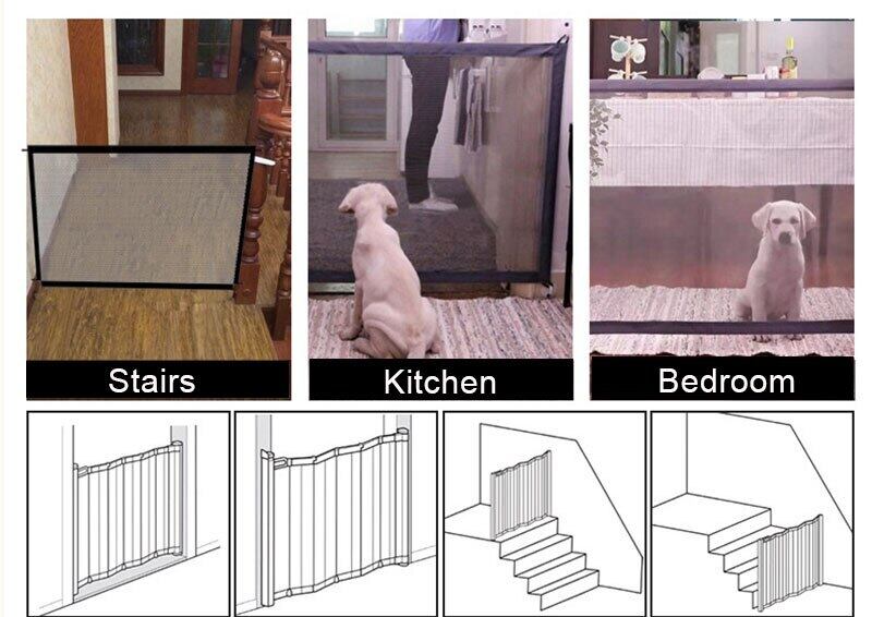 犬フェンスゲート安全ガードエンクロージャ猫フェンス独創的なメッシュマジックインストールペットゲートペット用品無料