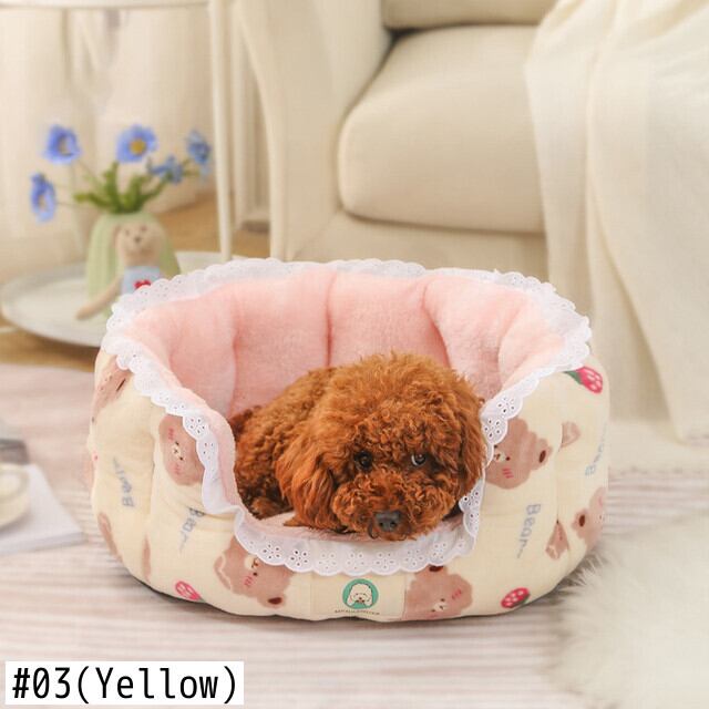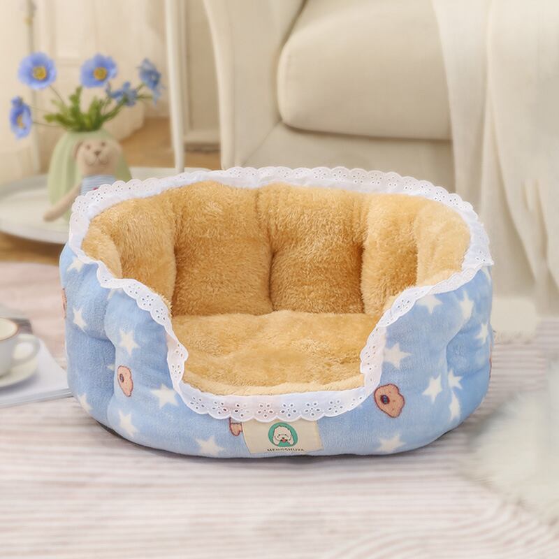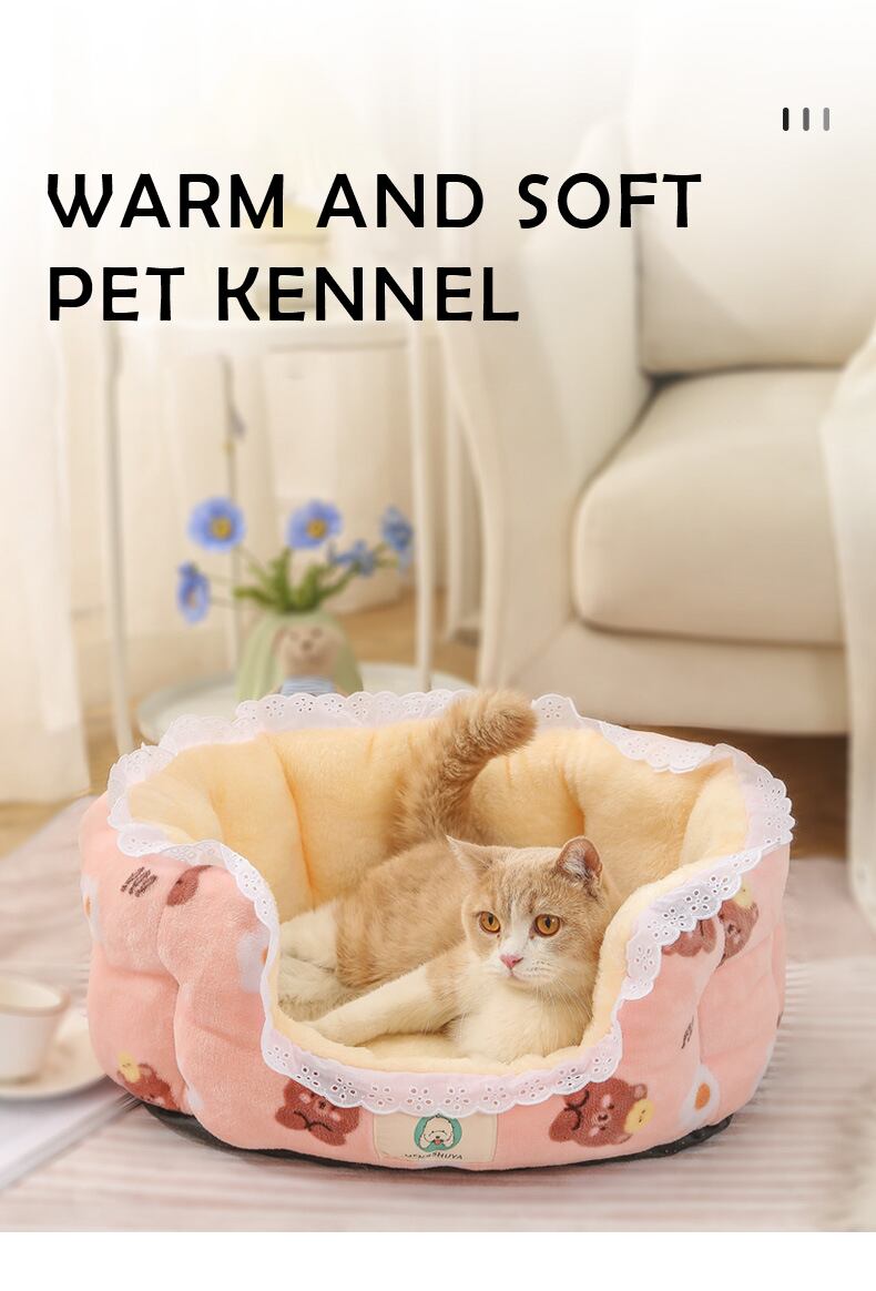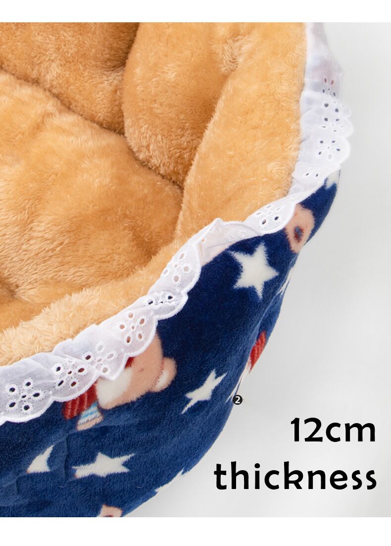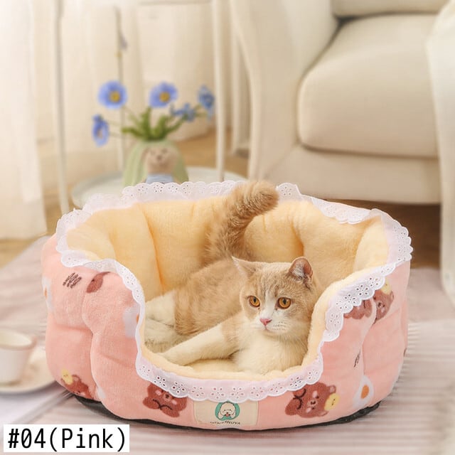 CAWAYI KENNEL プリント レース 猫用ベッド キュート ラウンド 犬 ペットハウス製品 暖かい 犬 ベッド 犬 猫 小動物 子犬 子猫 テディ