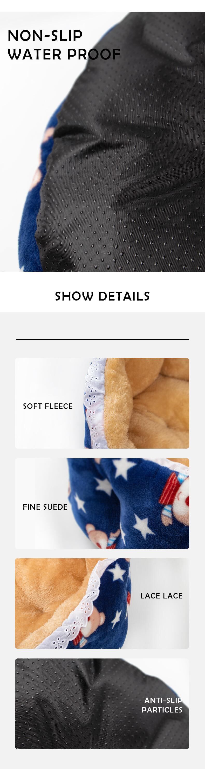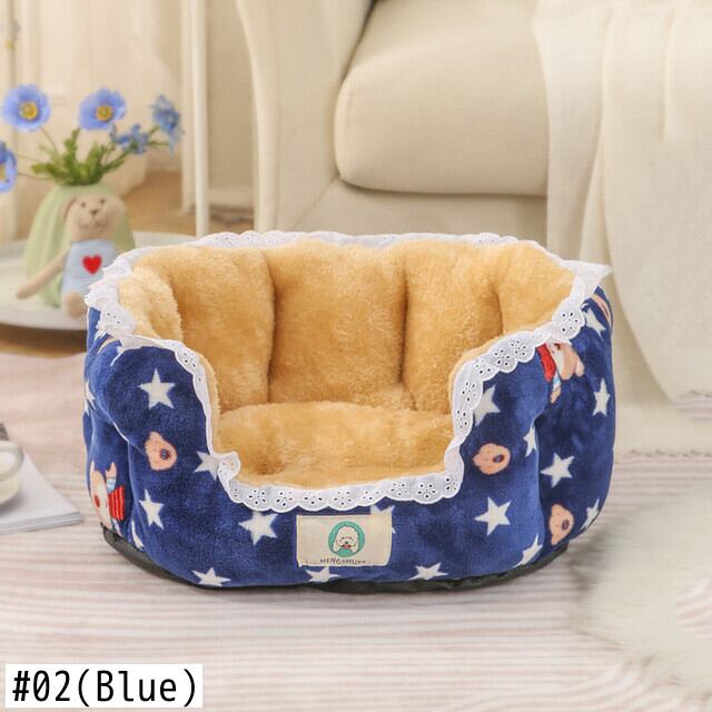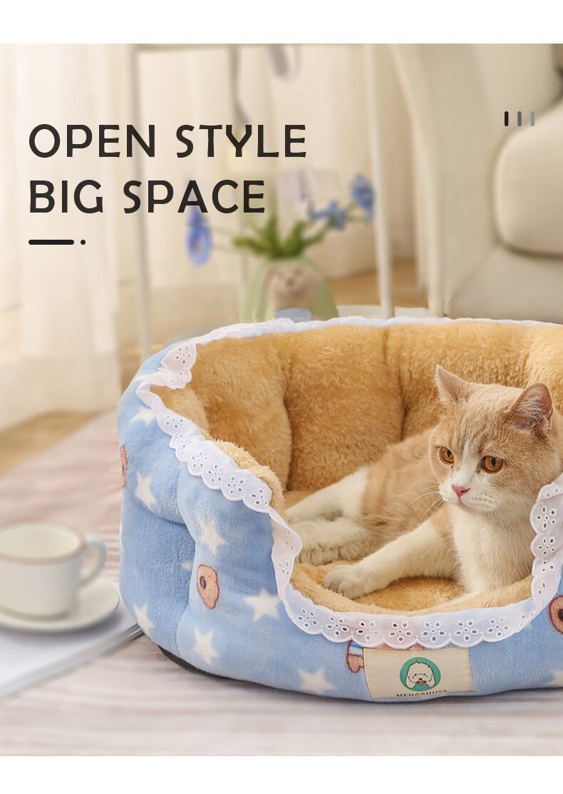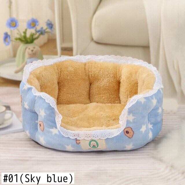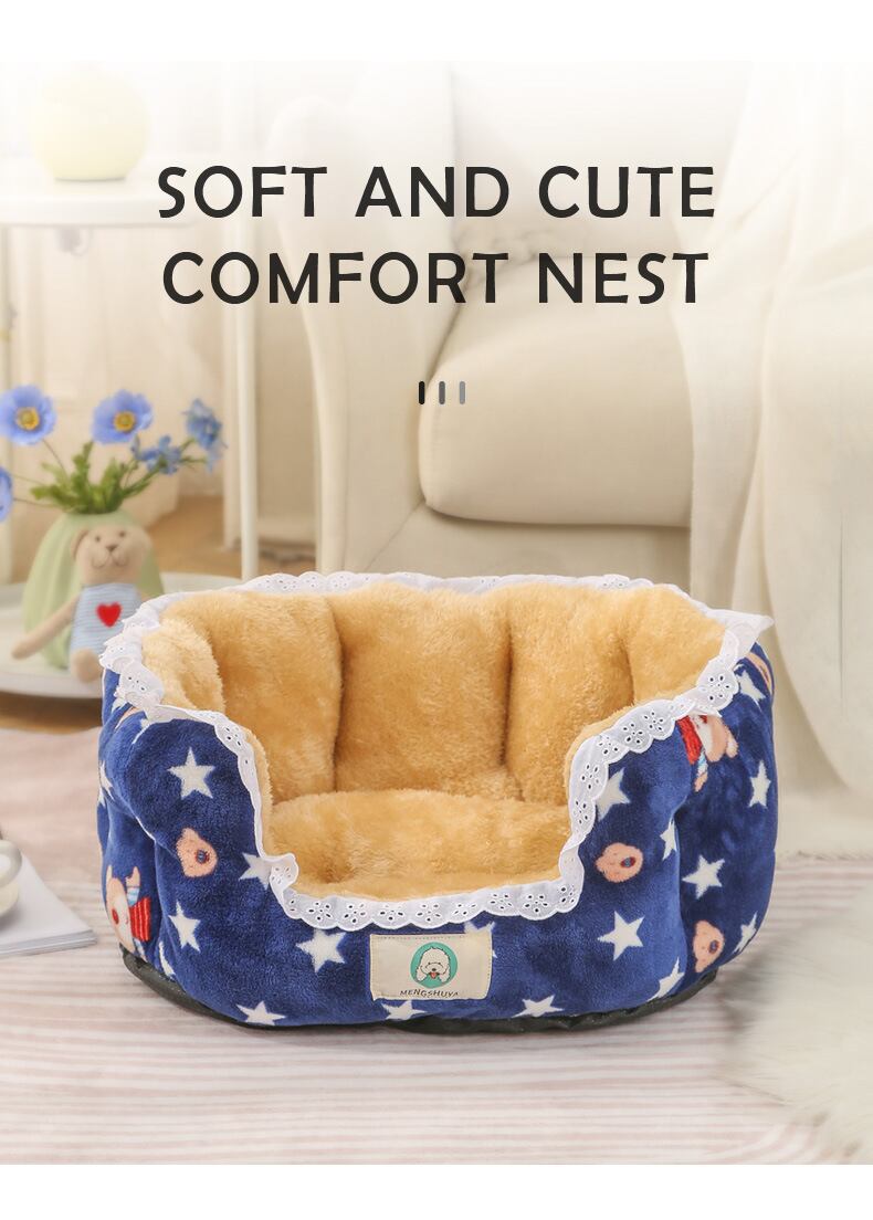 CAWAYI KENNEL プリント レース 猫用ベッド キュート ラウンド 犬 ペットハウス製品 暖かい 犬 ベッド 犬 猫 小動物 子犬 子猫 テディ