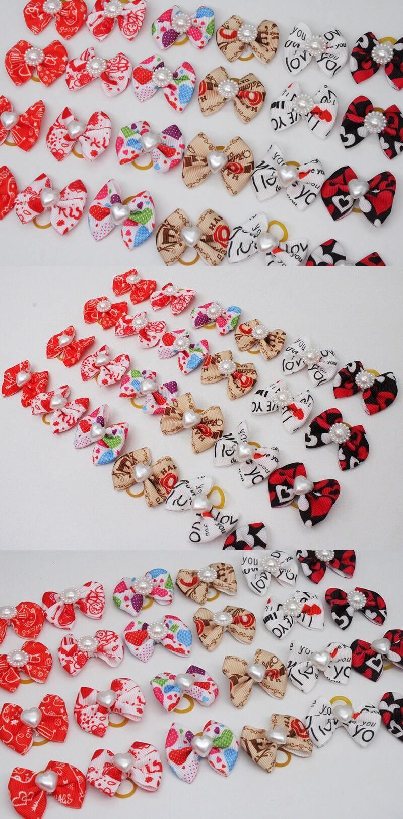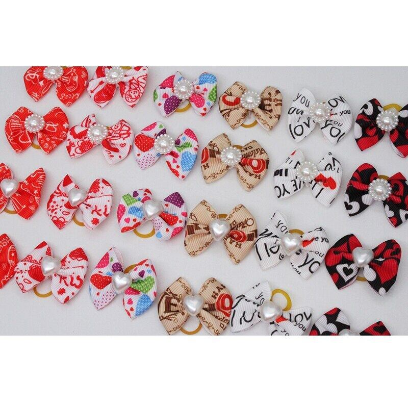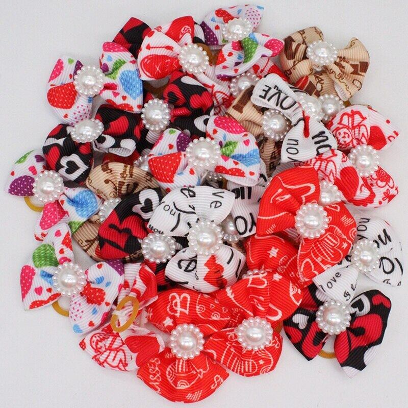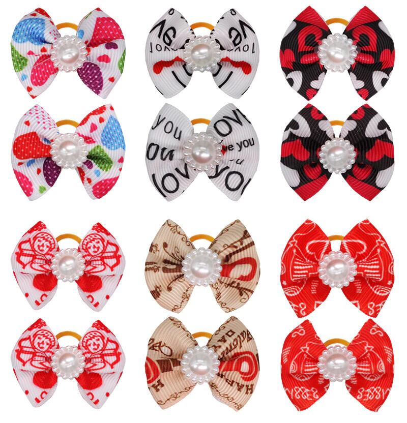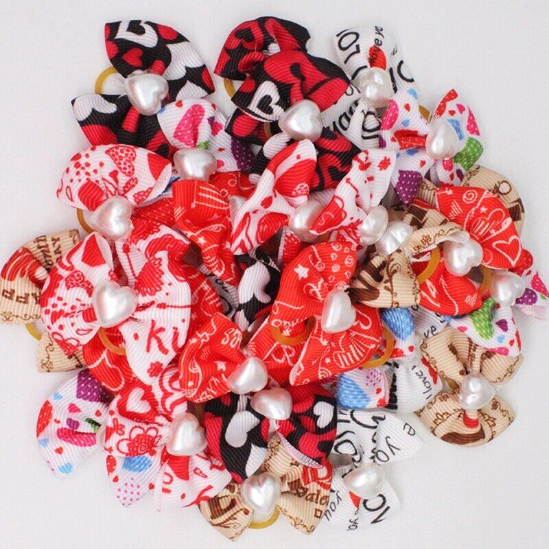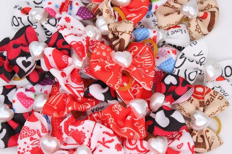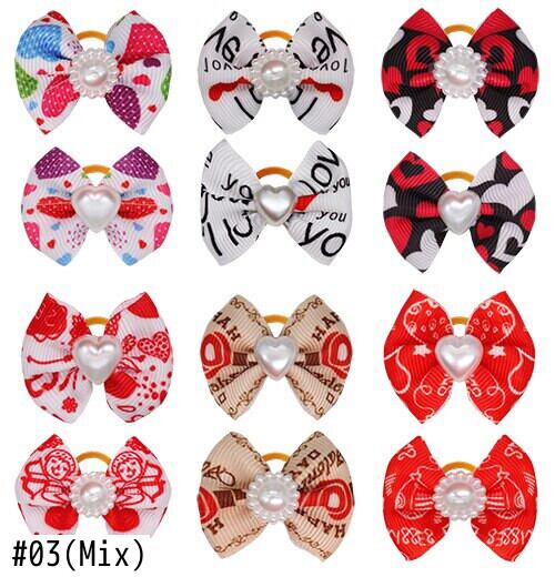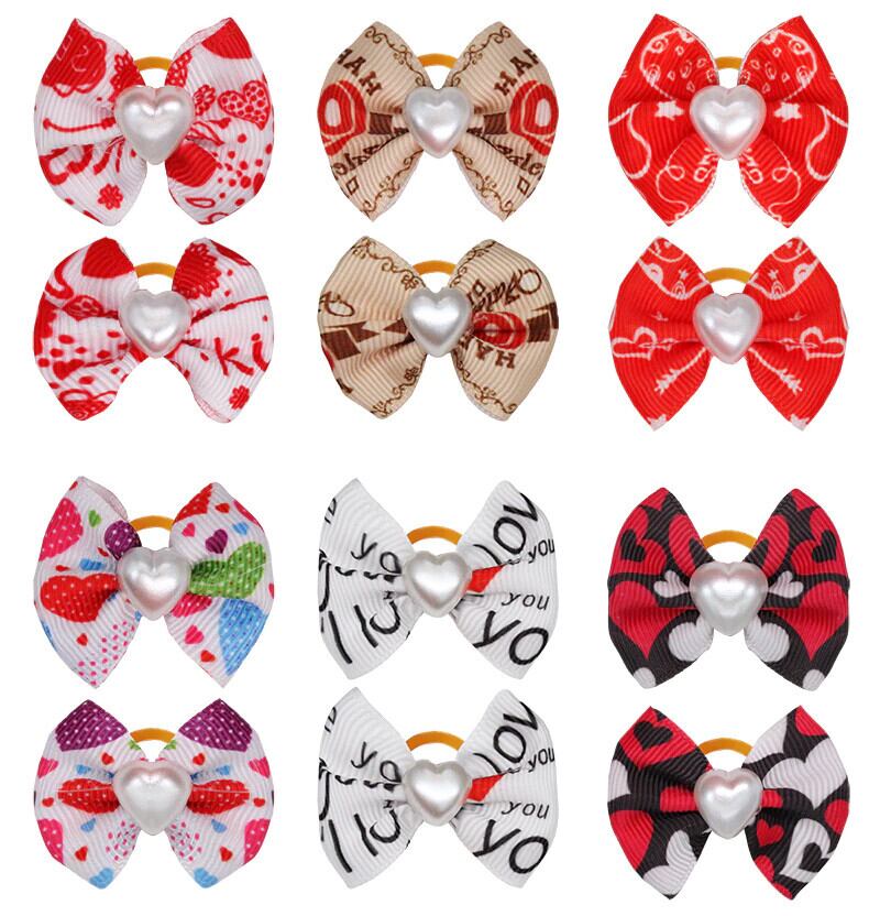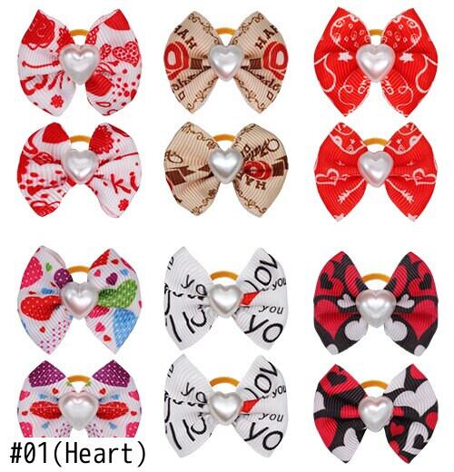 12/24 個バレンタインデーの犬の毛の弓ラブハートスタイルの猫の毛のゴムバンドペット用品子犬アクセサリー