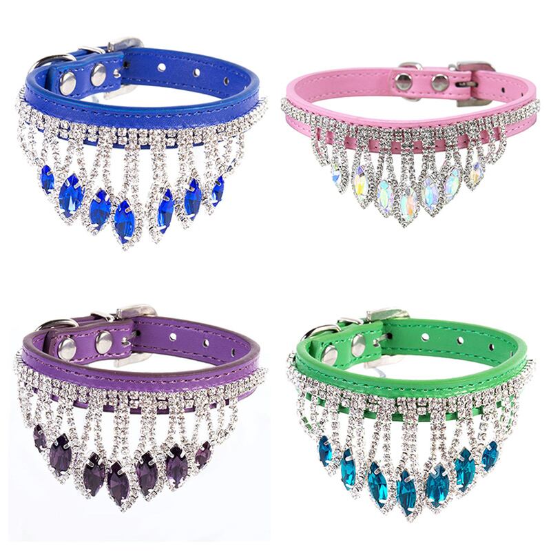 ラインストーン Pu レザー首輪犬猫調節可能な高級ネックレスペット子犬猫ネックレスペット製品 4 色