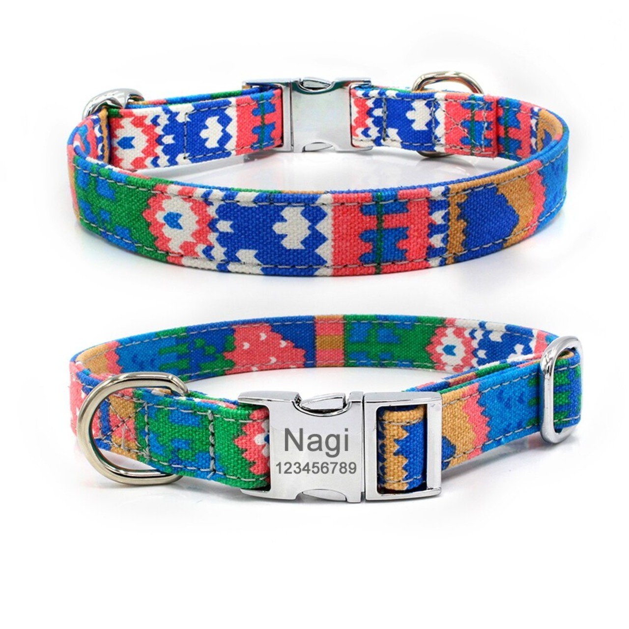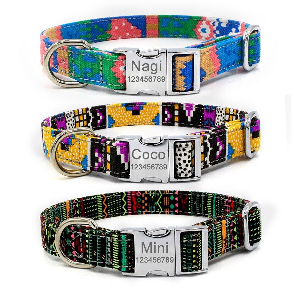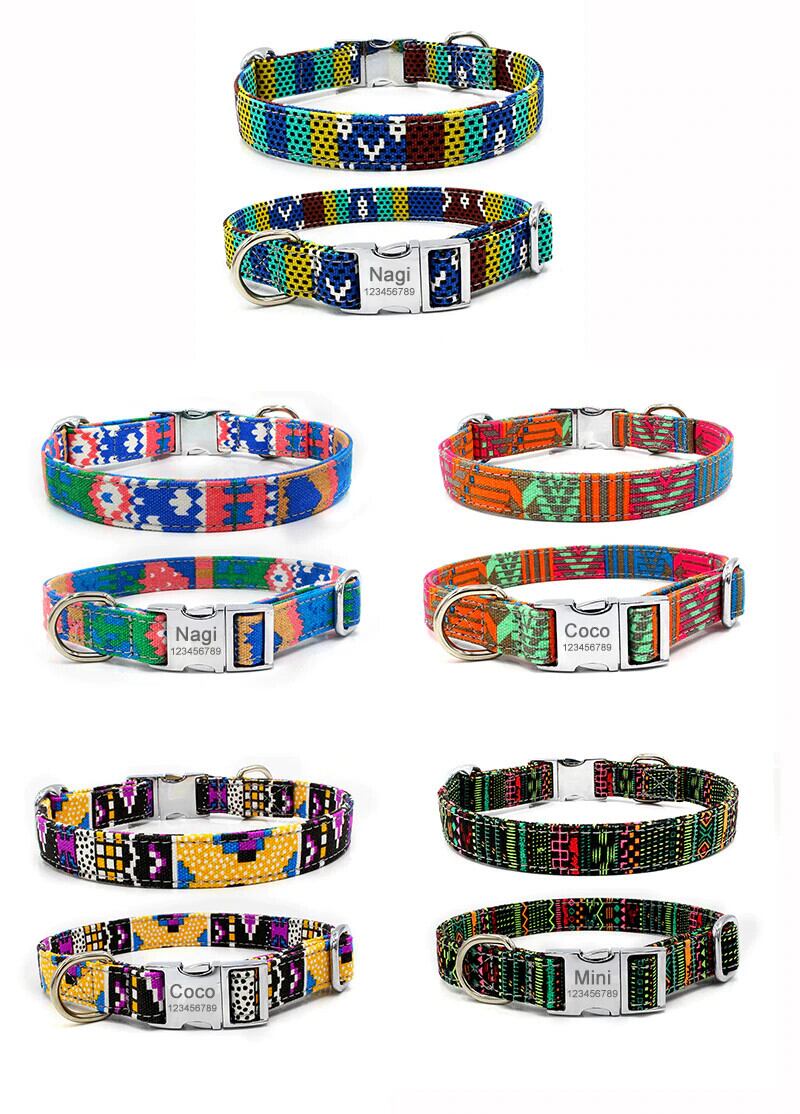 カラフルな犬の首輪パーソナライズ ID ナイロン ペット カスタム刻まれた名前猫革ネックレス調節可能な小中大