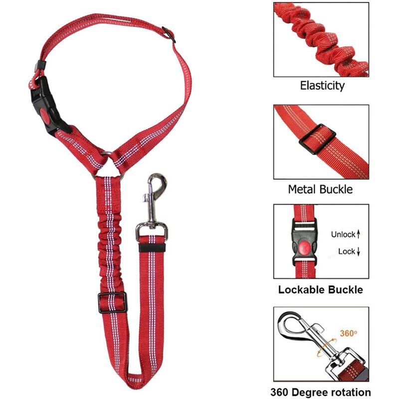 CAWAYI KENNEL ナイロン ソフト ペット 犬 チェーン 牽引ロープ リード ロープ 格納式 弾性 反射 カーシート 安全ベルト 大型犬