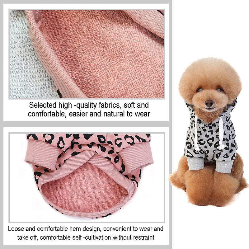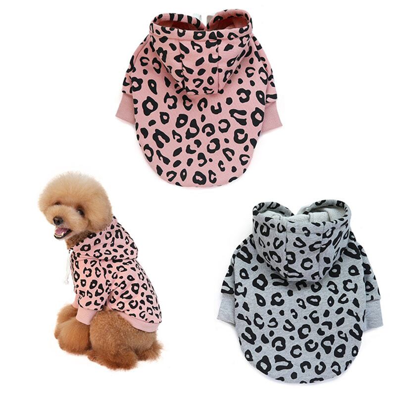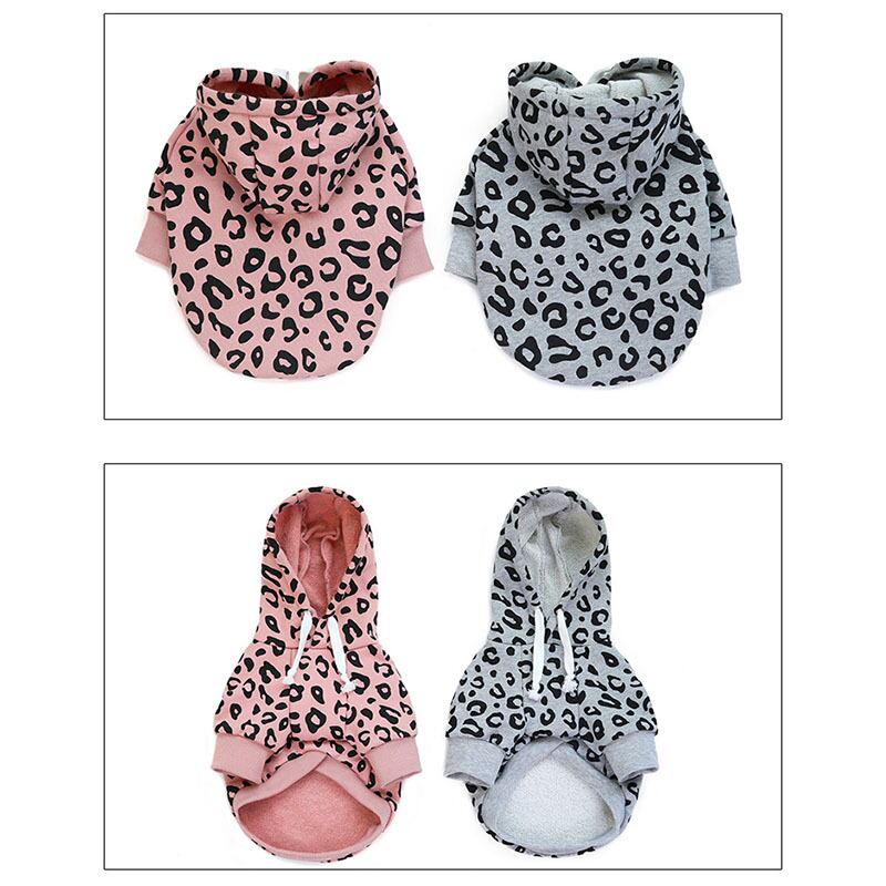 ヒョウ柄パーカーペット犬服犬猫暖かいスウェットシャツ小中ジャケット