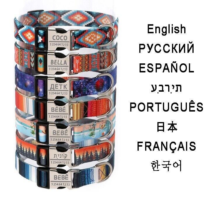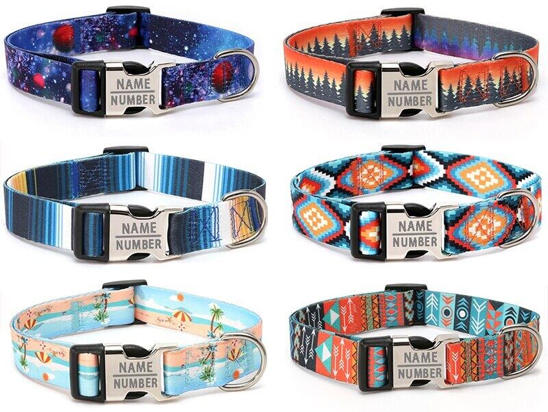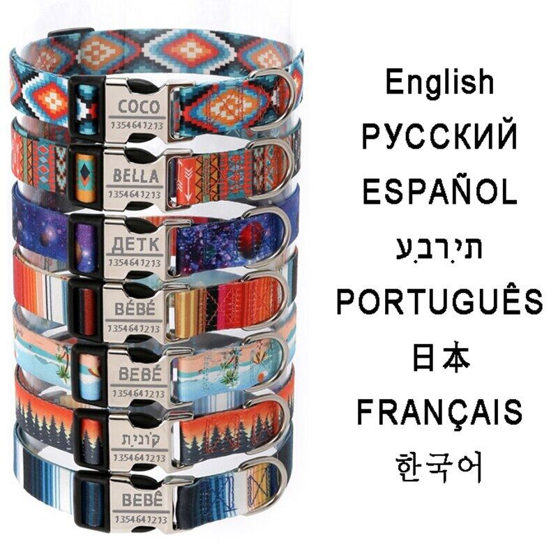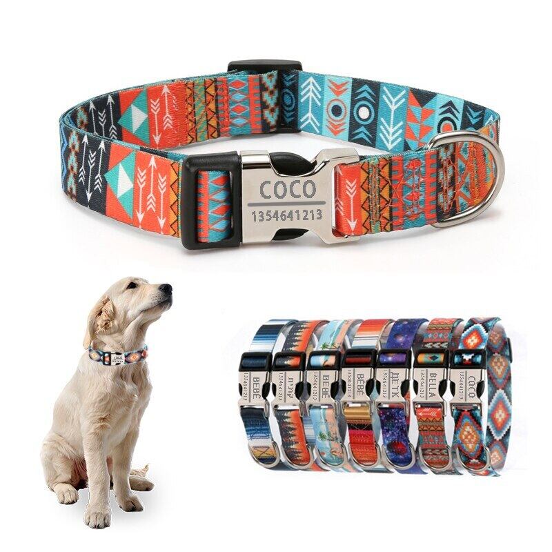 パーソナライズされた犬の首輪カスタムIDリムーバブルボヘミアスタイル調節可能なポリエステルペットネックレスループ小型大型犬