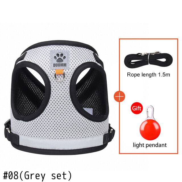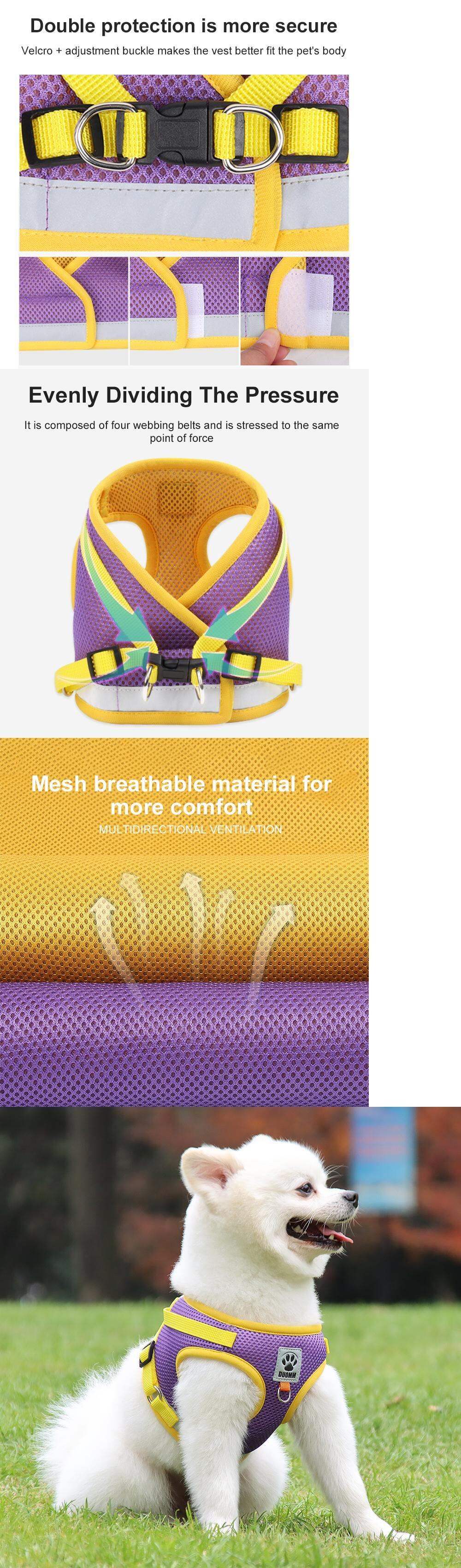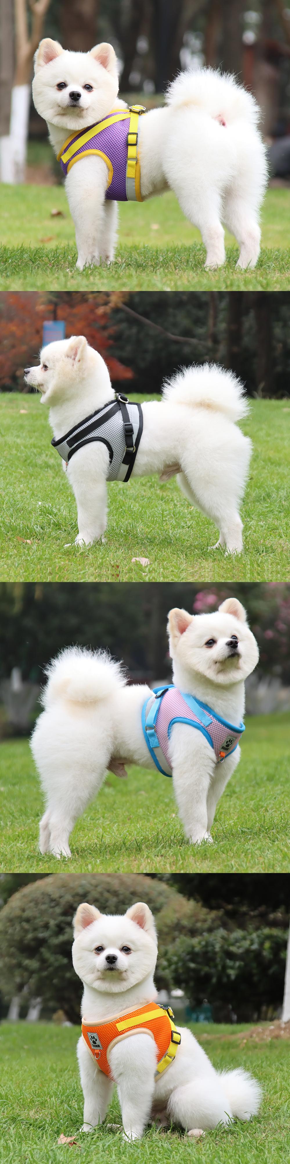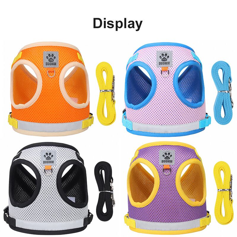 犬のハーネスとリーシュセット小型犬猫反射ペットハーネス調節可能な通気性ペットチェストベストリーシュ犬のアクセサリー