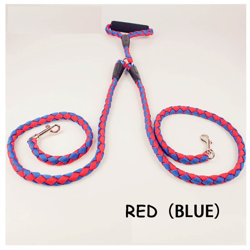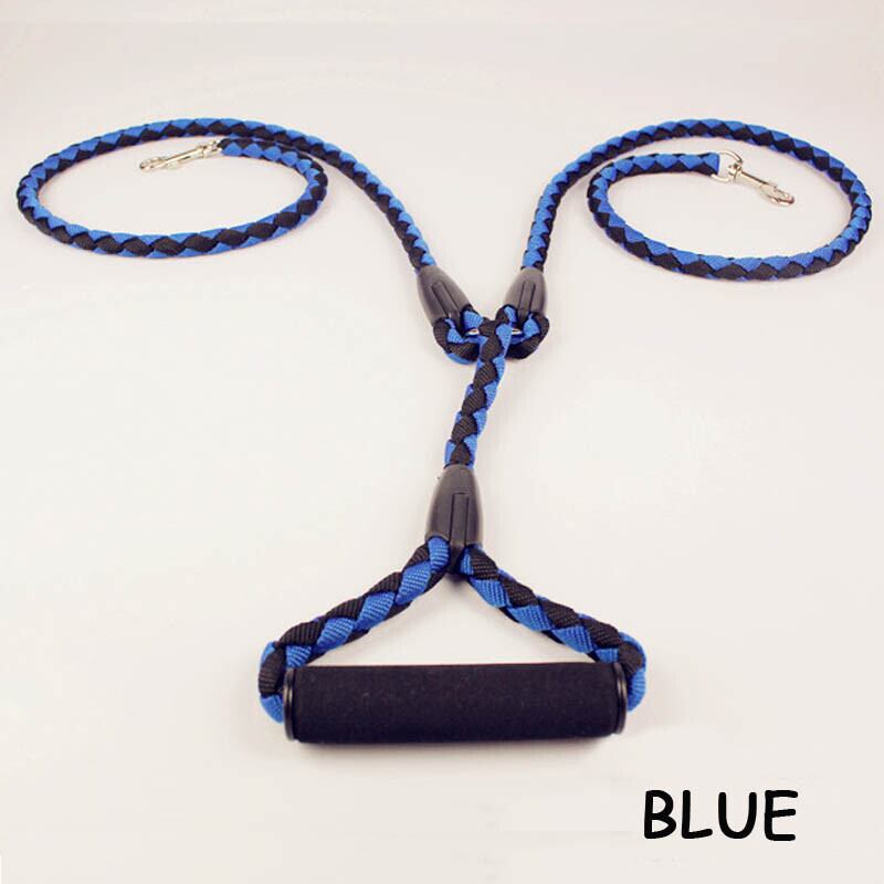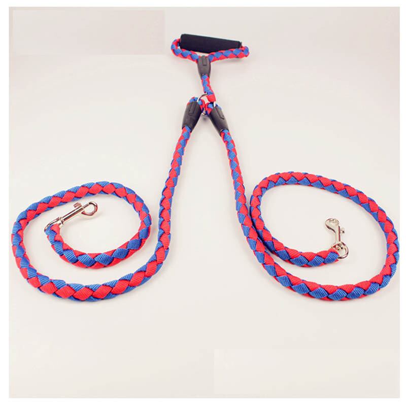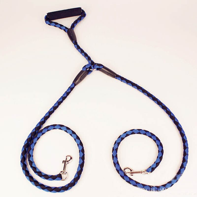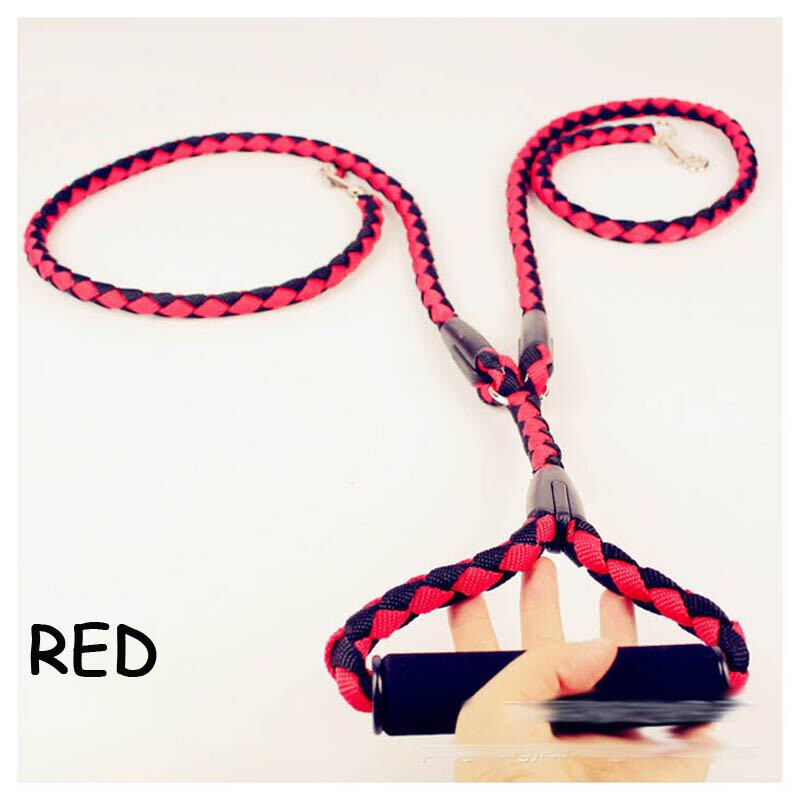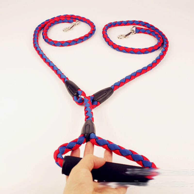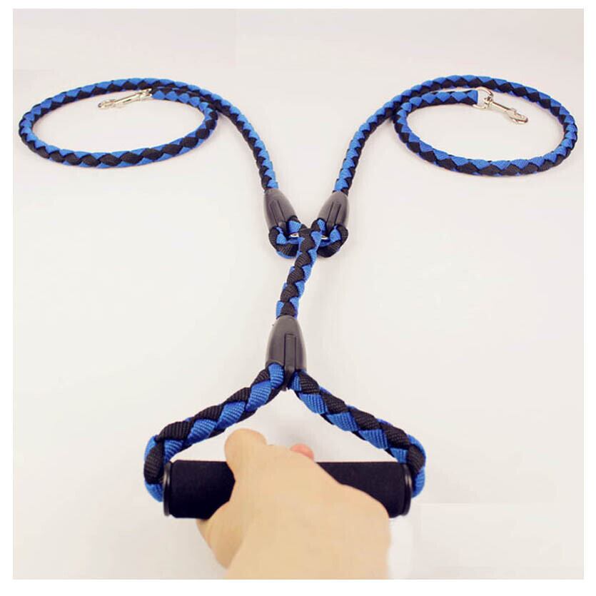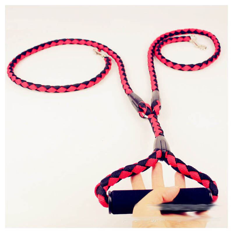 ハンドフリーダブルドッグリーシュロープカプラー双方向編組ナイロンペット犬ウォーキングトレーニングリードなしもつれダブルウォークペットカプラー