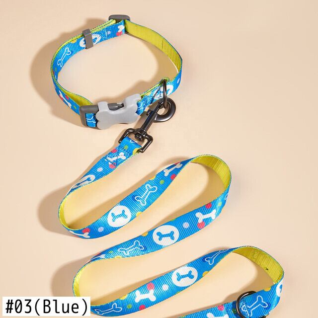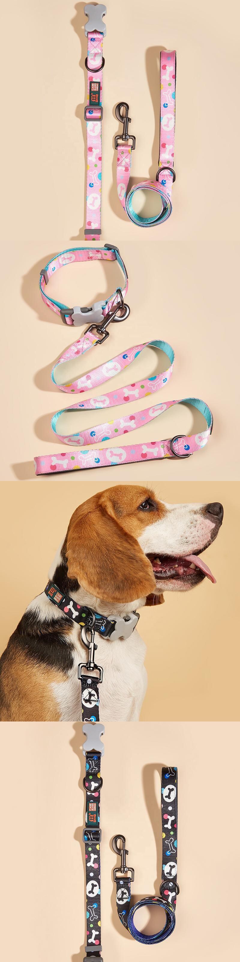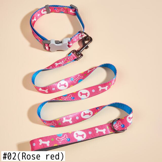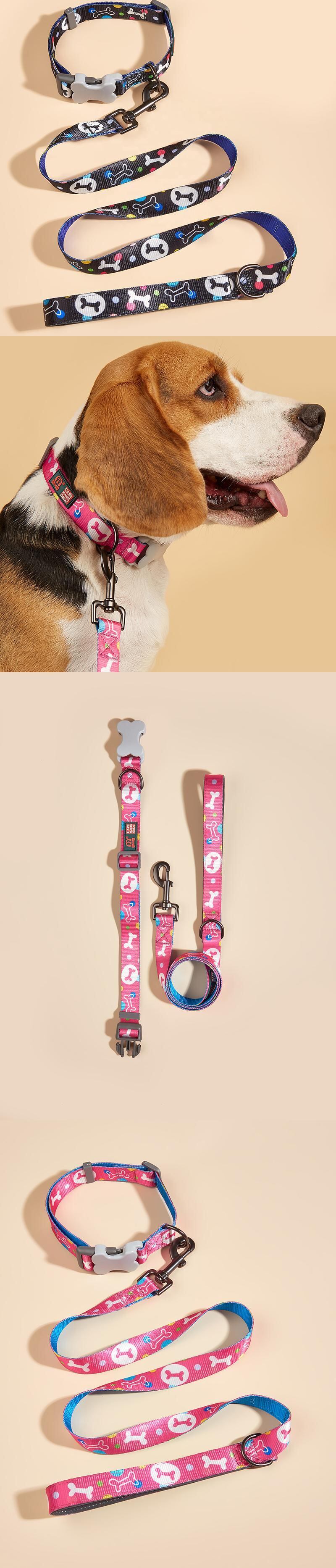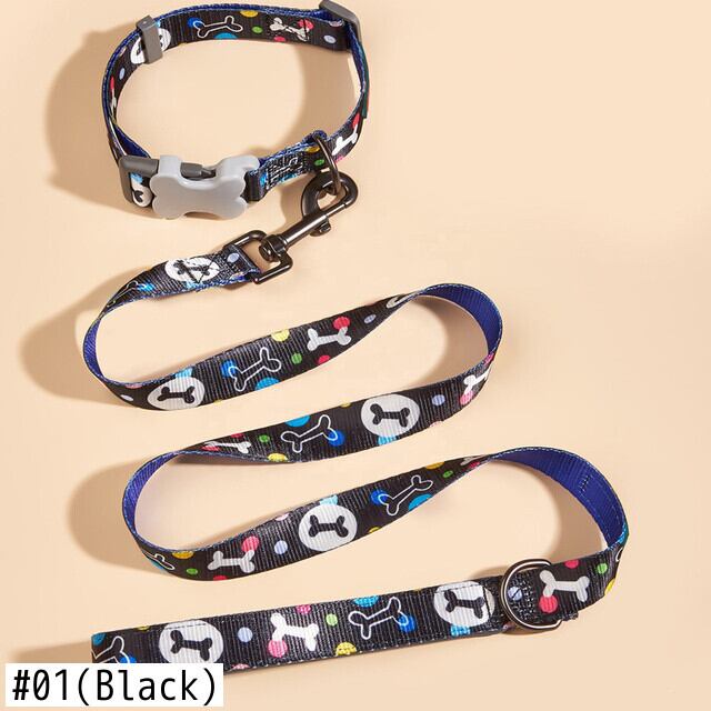 CAWAYI KENNEL 骨プリント 犬の首輪 リーシュ付き 小 中 大型犬 ピットブル リーシュ 犬 調節可能なナイロン ペットの首輪 リード