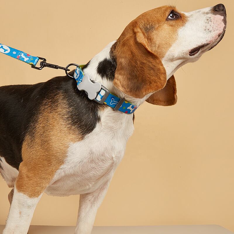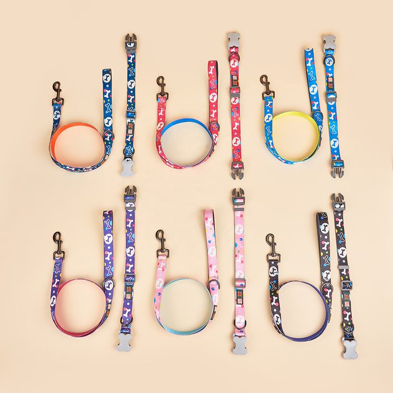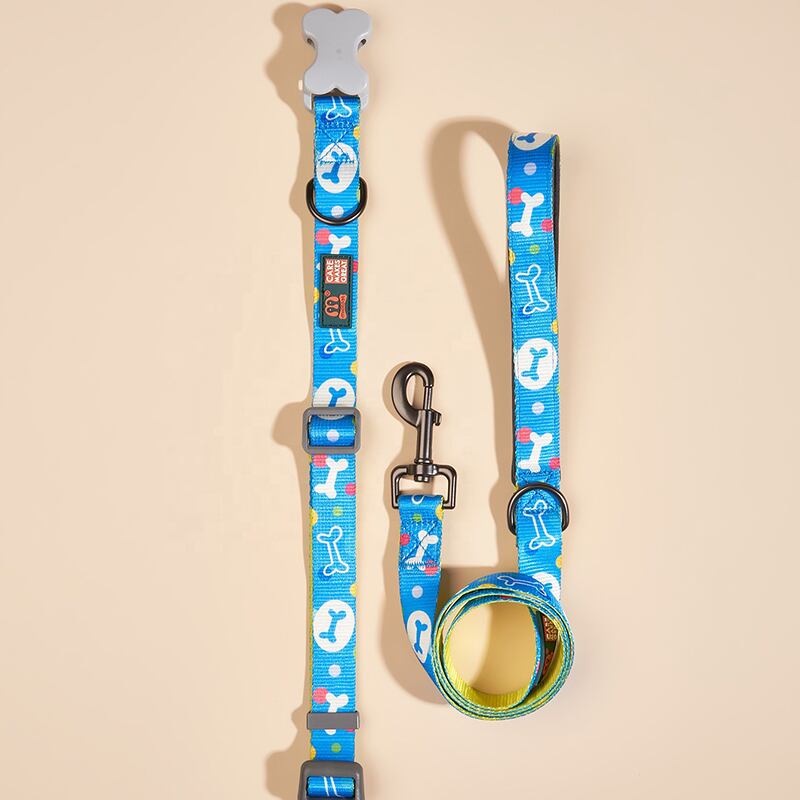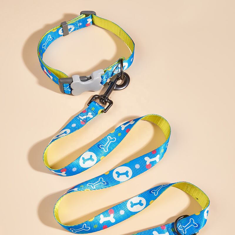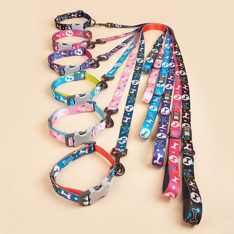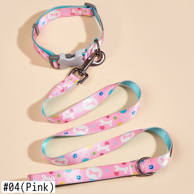 CAWAYI KENNEL 骨プリント 犬の首輪 リーシュ付き 小 中 大型犬 ピットブル リーシュ 犬 調節可能なナイロン ペットの首輪 リード