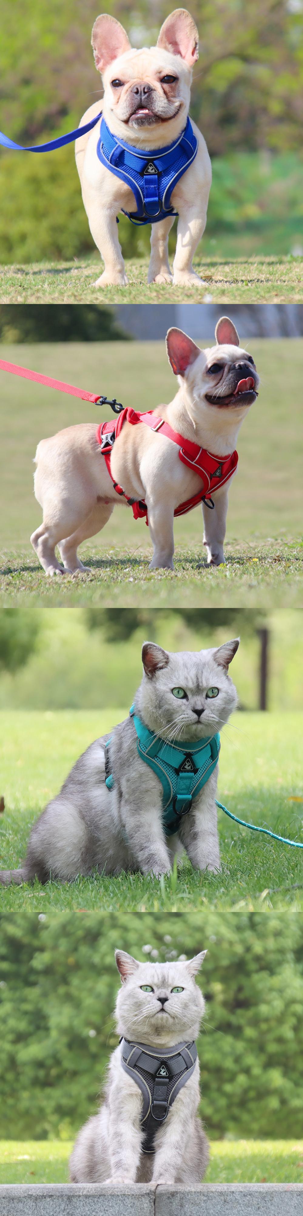 犬用ハーネス小中型犬猫ノープル反射ペット胸ベスト牽引リーシュセット調節可能な屋外ペットハーネス