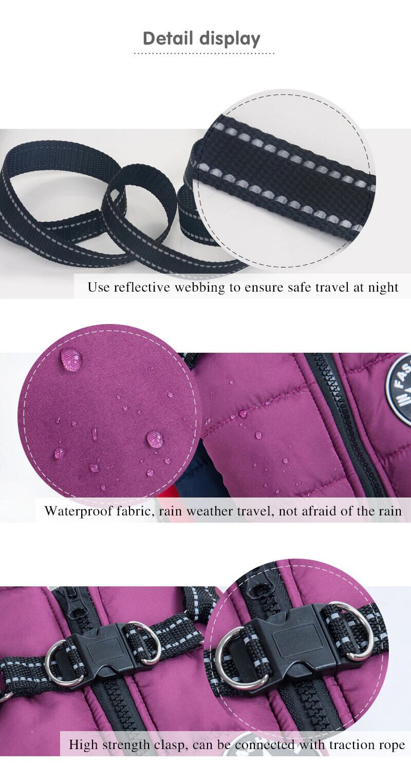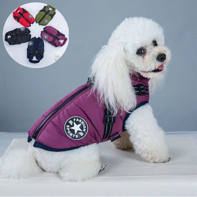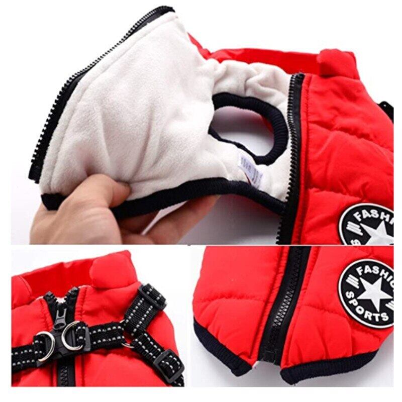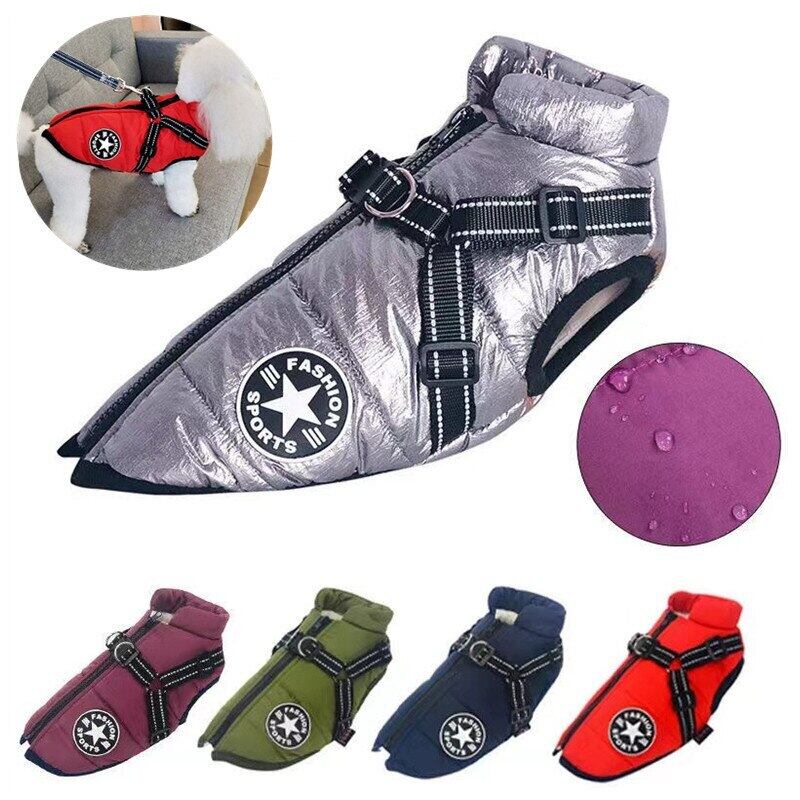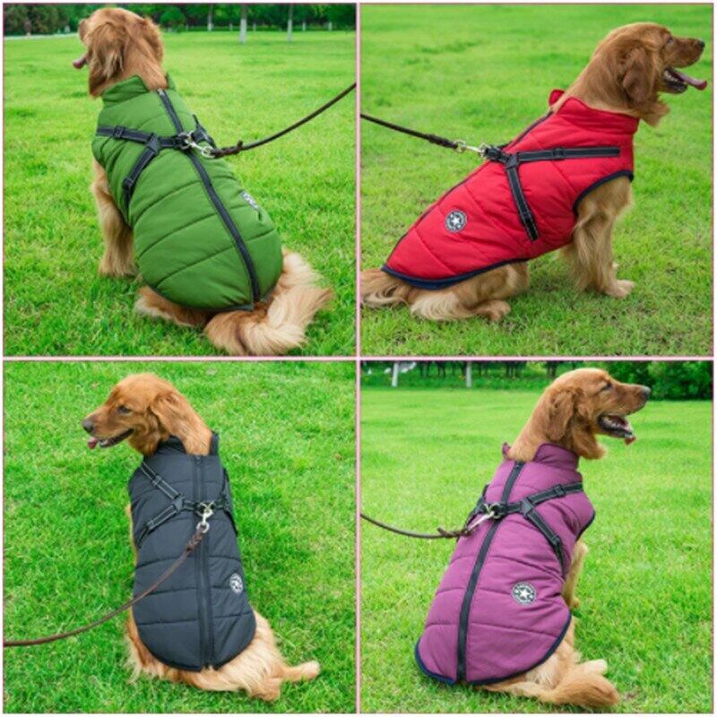 ペット犬ジャケットベスト付きハーネス冬暖かい犬服ラブラドール防水大型犬コートチワワフレンチブルドッグ衣装
