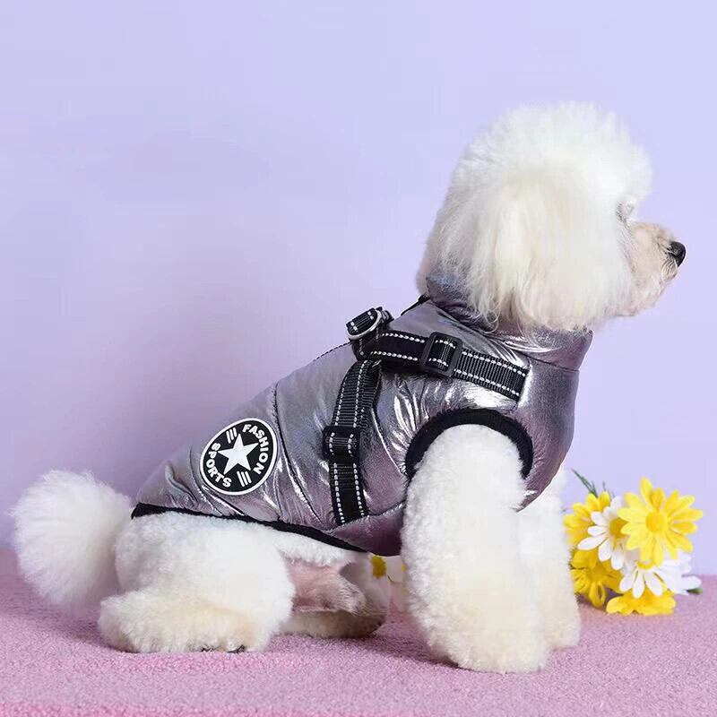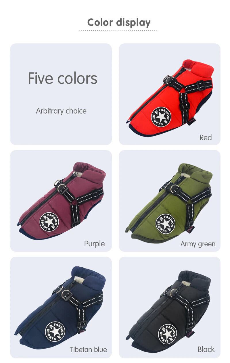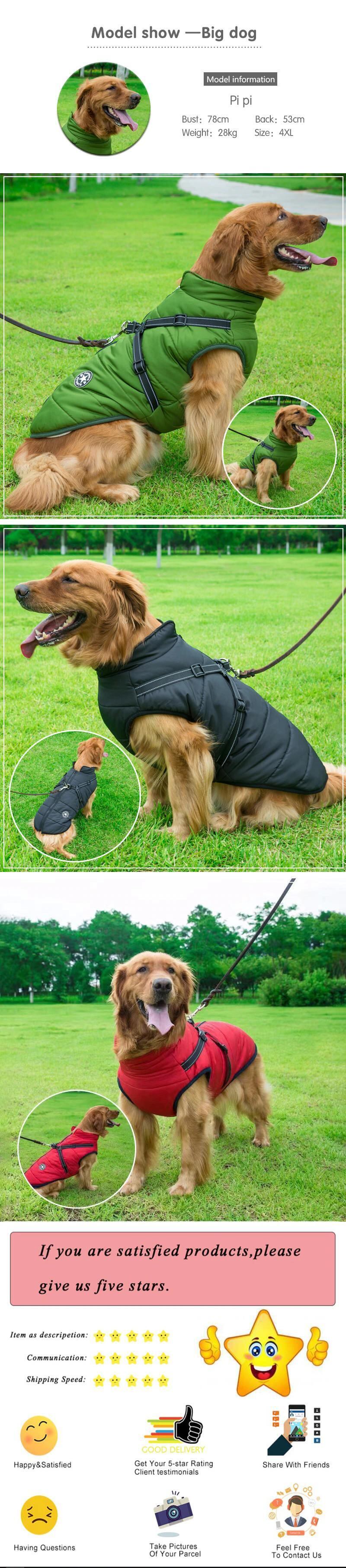 ペット犬ジャケットベスト付きハーネス冬暖かい犬服ラブラドール防水大型犬コートチワワフレンチブルドッグ衣装