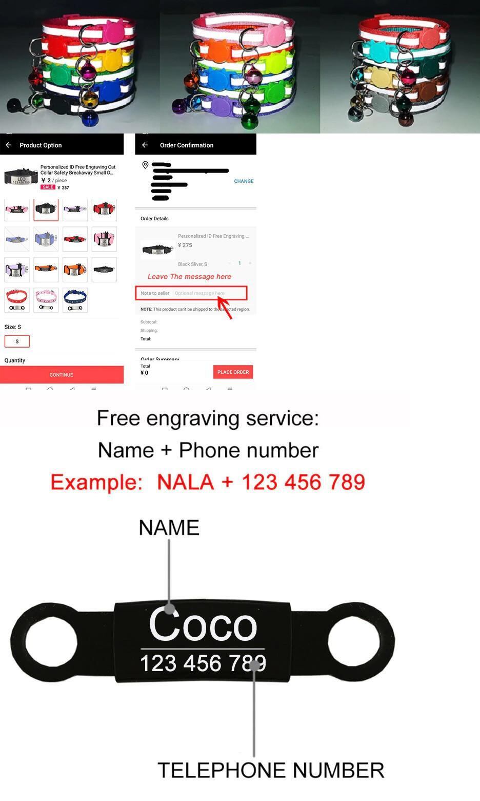反射猫安全バックル首輪調節可能なカスタムパーソナライズ ID 無料彫刻ナイロン子犬子猫ネックレス