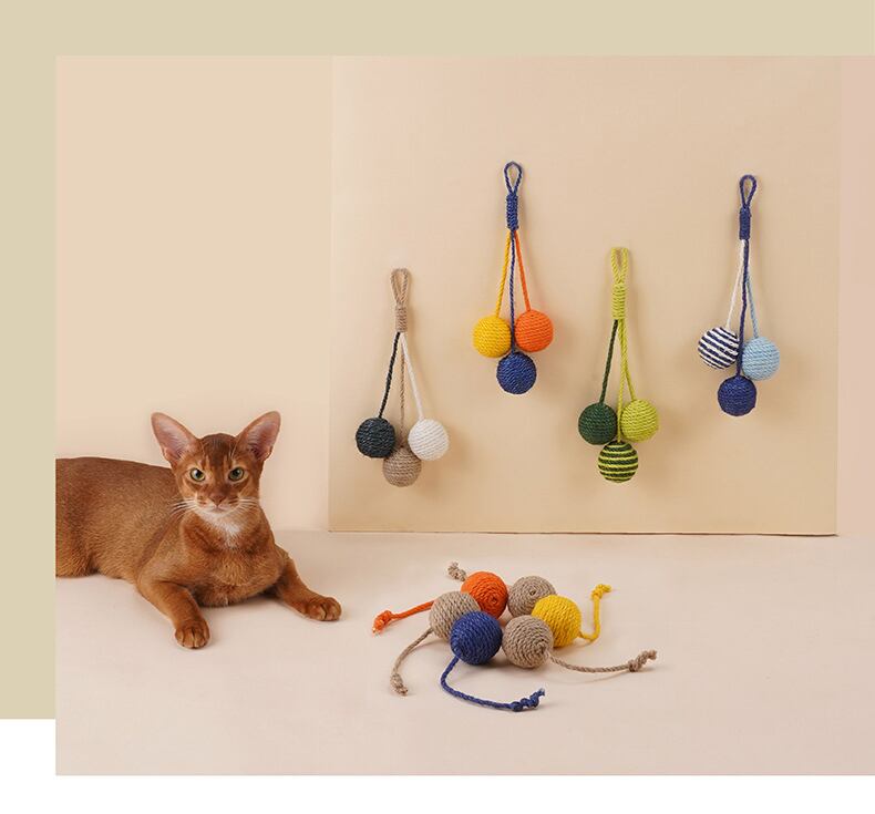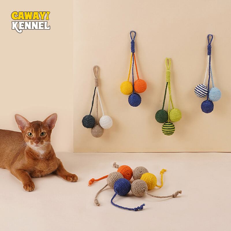 CAWAYI 犬小屋 猫のおもちゃ アクセサリー 再生ボールおもちゃ ペット猫 サイザル麻バイト 耐性 きしむおもちゃ 子猫 猫 トレーニング ガトス