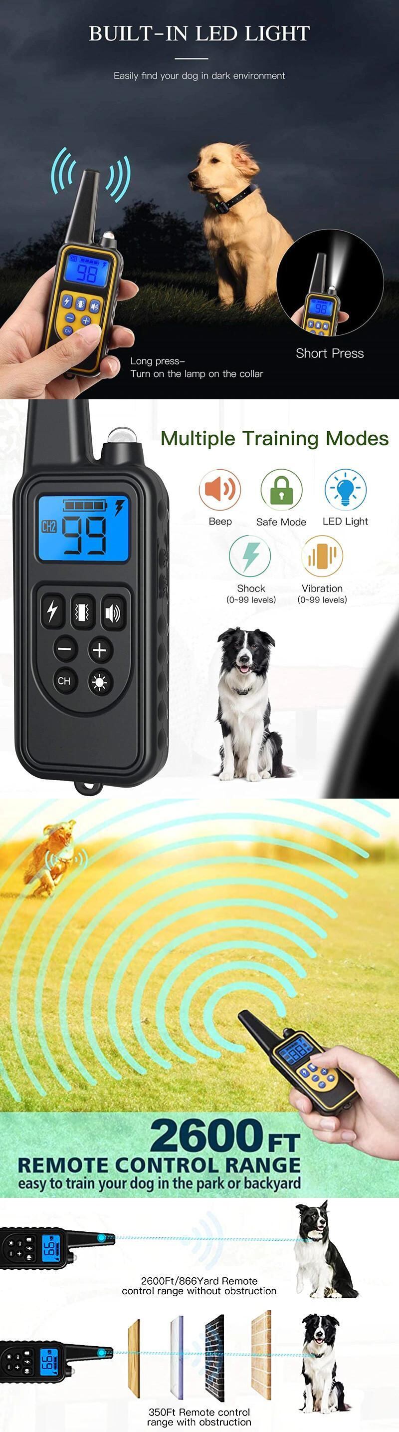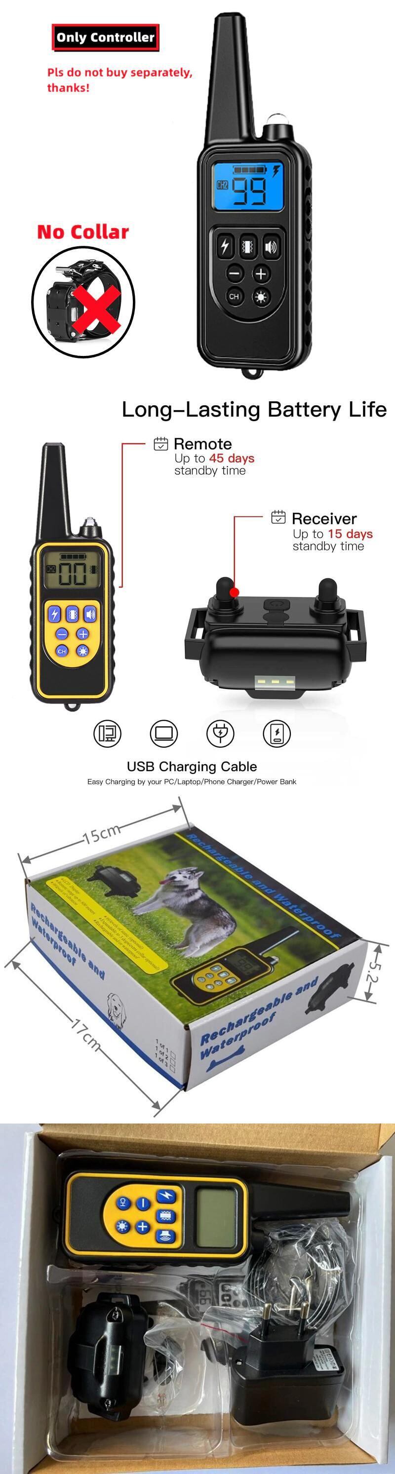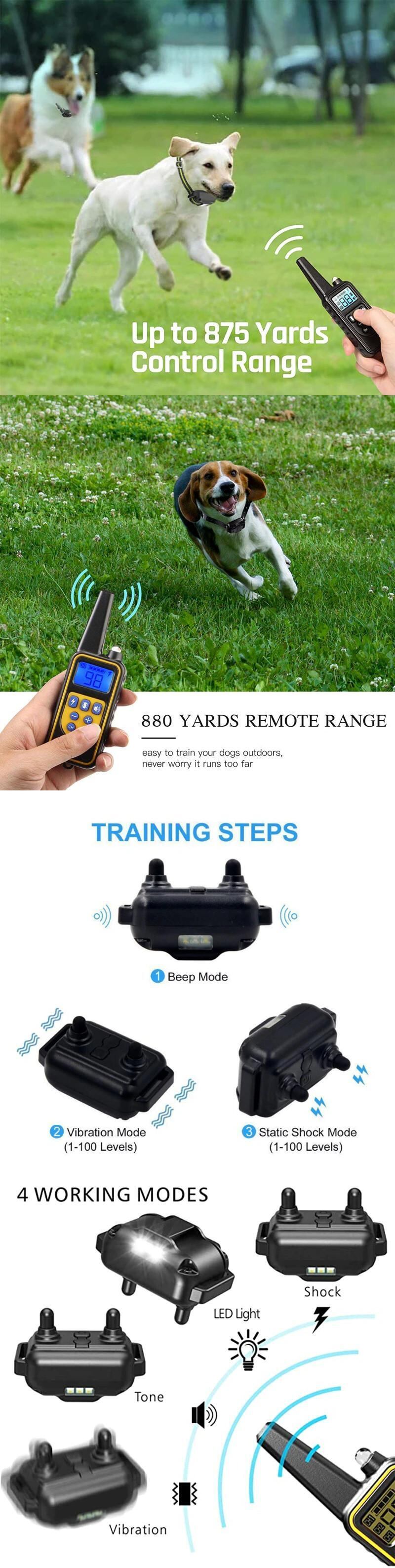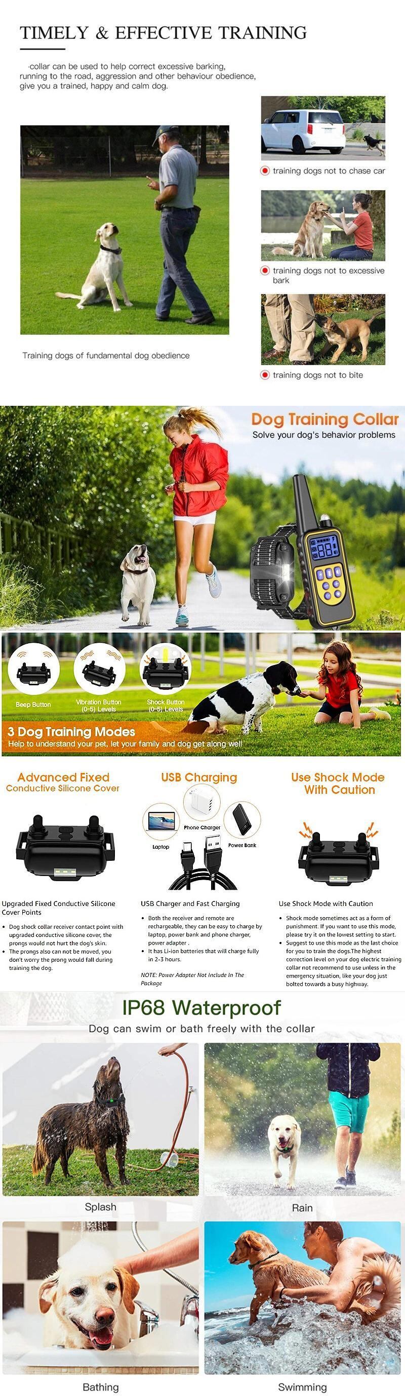 800 メートルリモコン電気アンチ吠えトレーニング犬の首輪充電式防水制御首輪犬の訓練機器