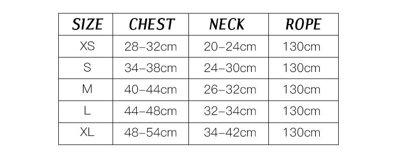 サイズ:XS胸囲28-32cm,S胸囲34-38cm,M胸囲40-44cm,L胸囲44-48cm