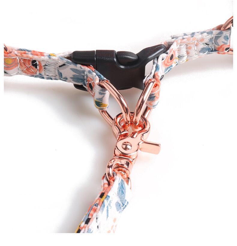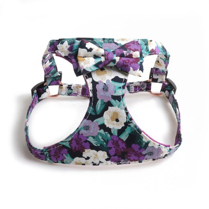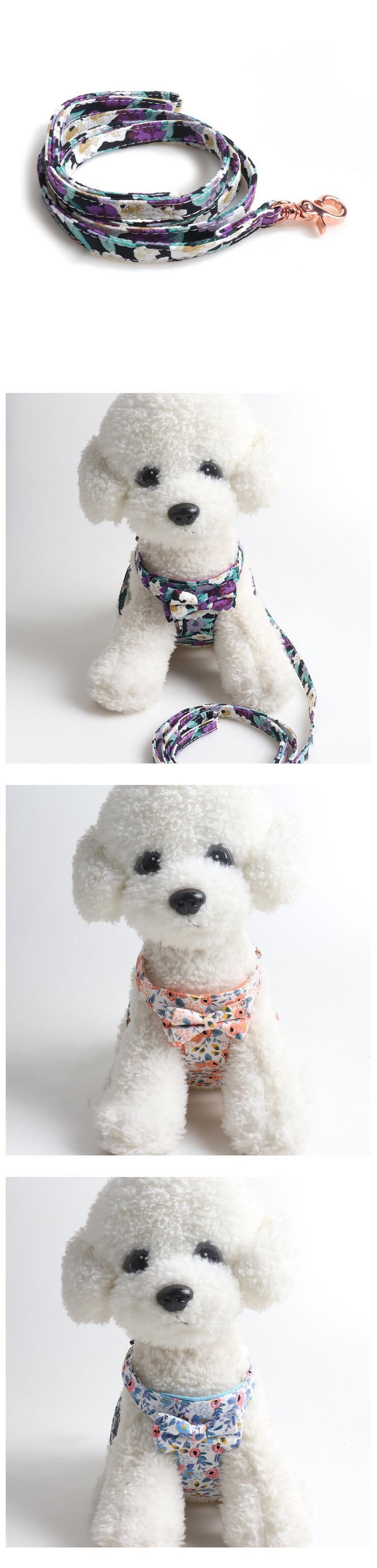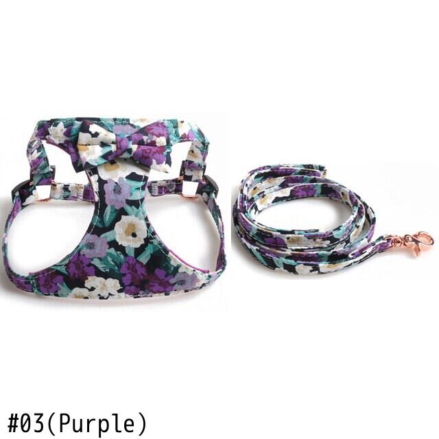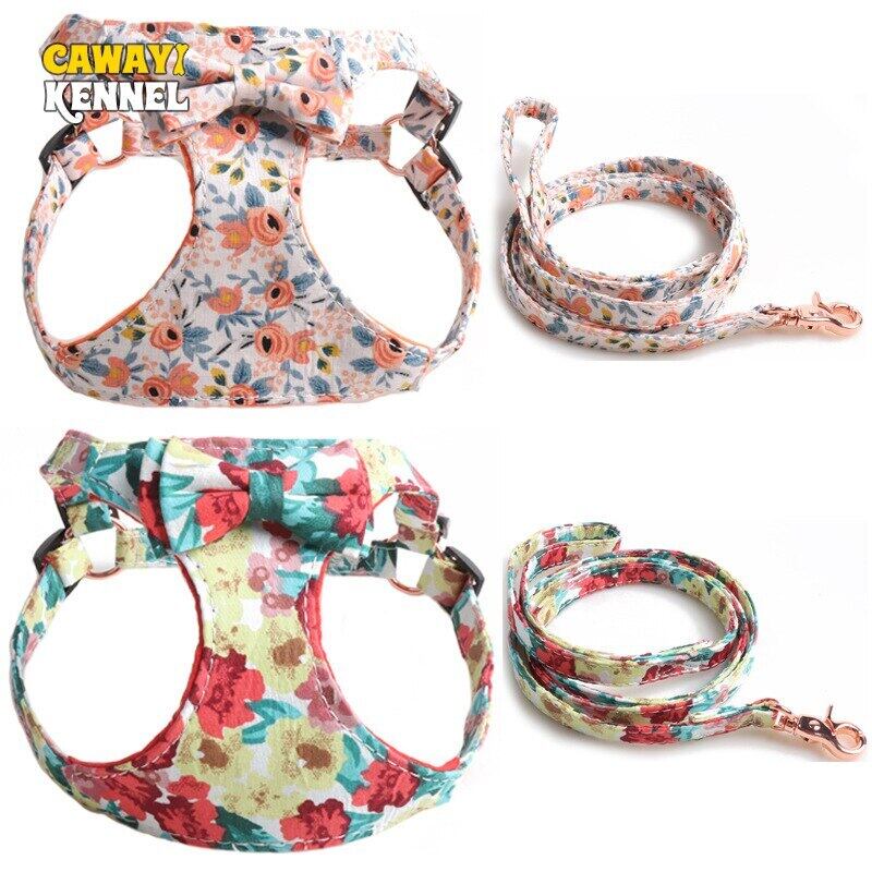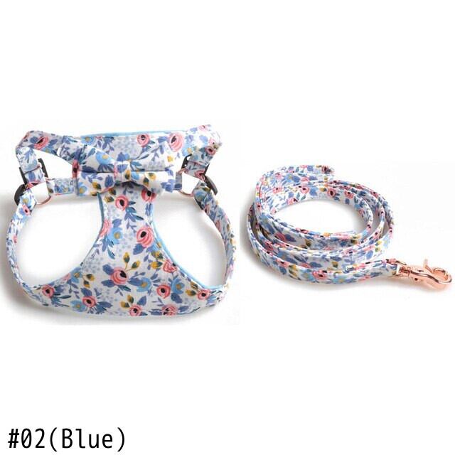CAWAYI KENNEL ペット ハーネス + リード セット トレーニング ウォーキング リード 小型 猫 犬 花柄 ハーネス 首輪 調整リード セット