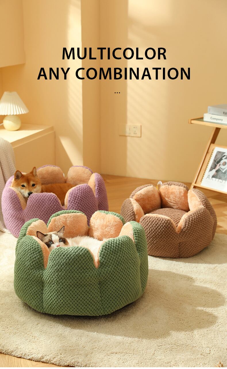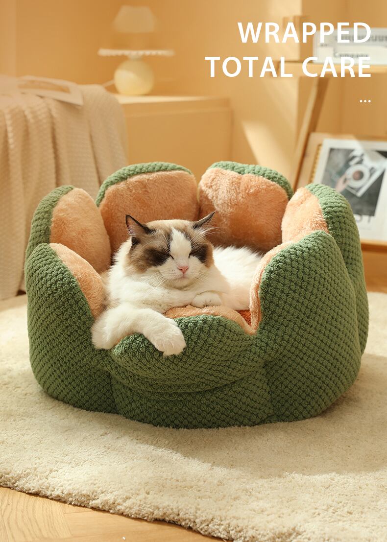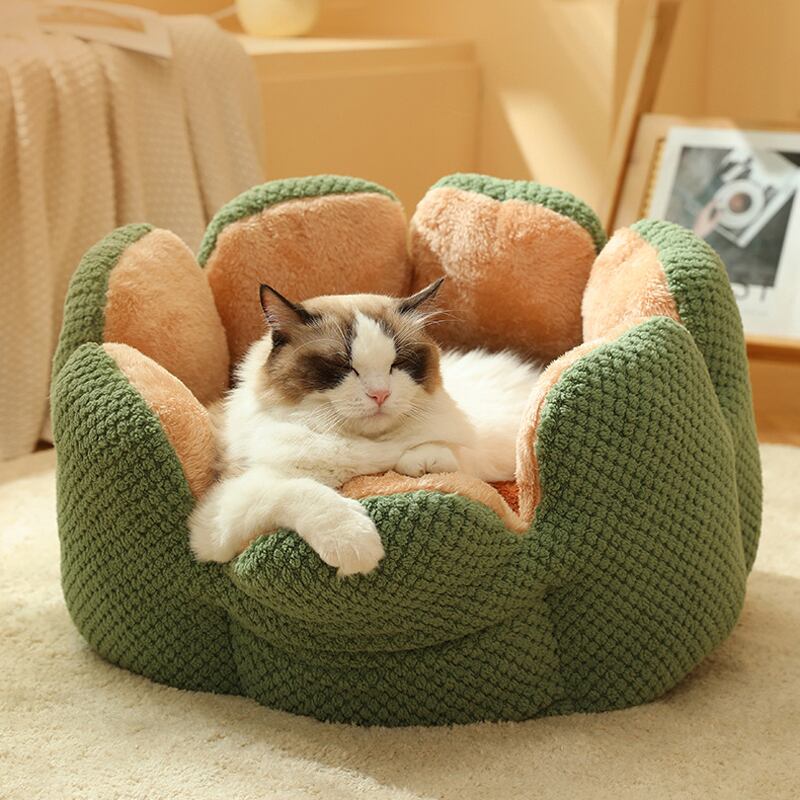CAWAYI 犬小屋冬暖かいサボテン猫ベッド花びら形のソフトフランネルペットソフトキャットハウス子犬犬クッションマット猫 Suppiles