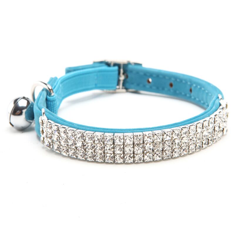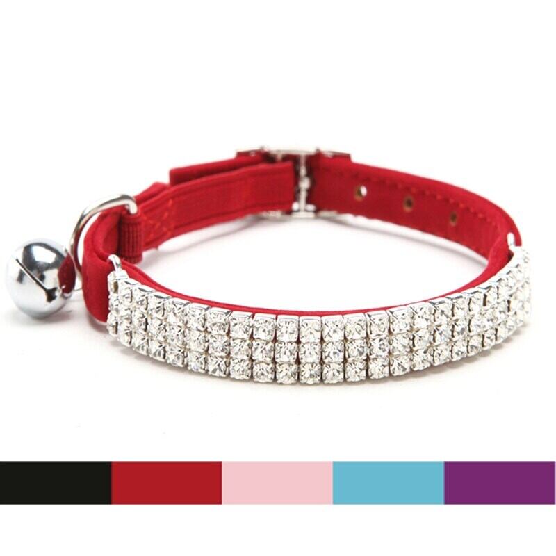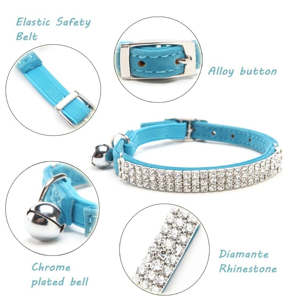 送料無料首輪猫の赤ちゃん子犬犬の安全弾性調整可能なディアマンテラインストーンベルソフトベルベット素材 S