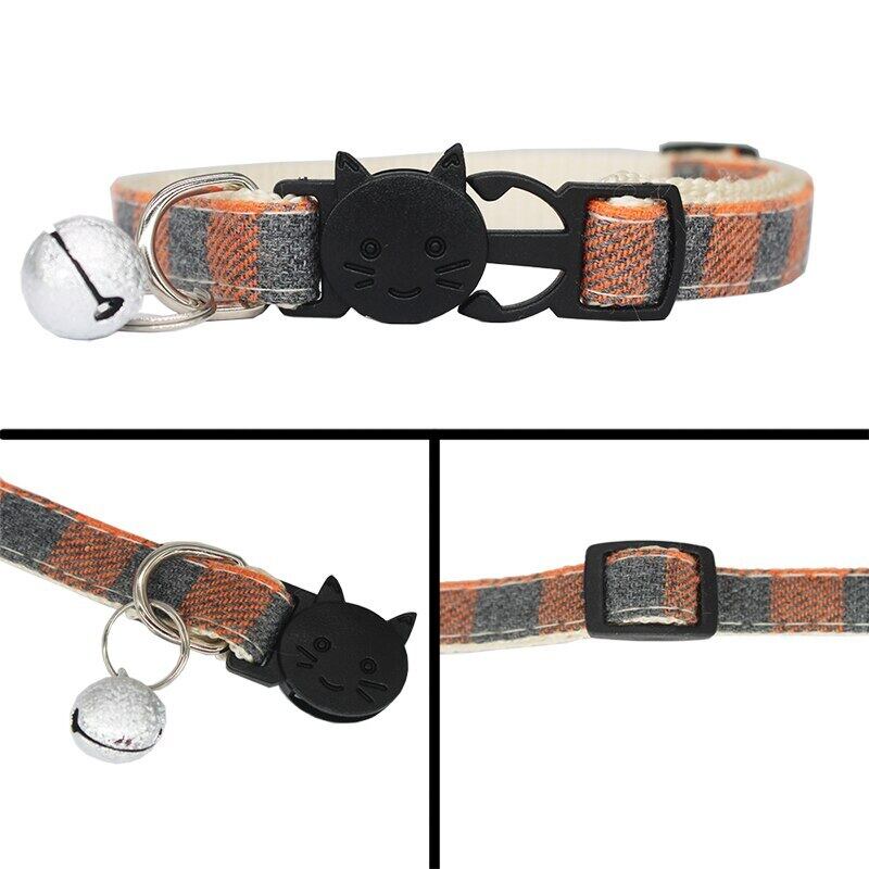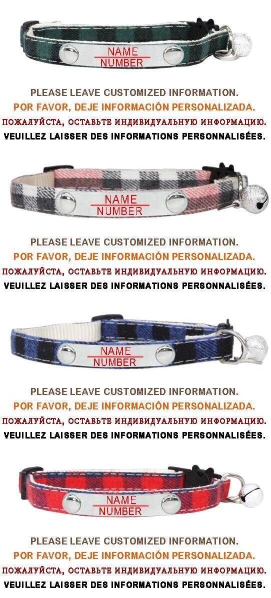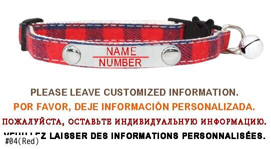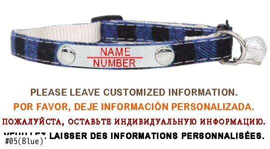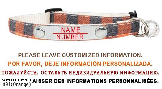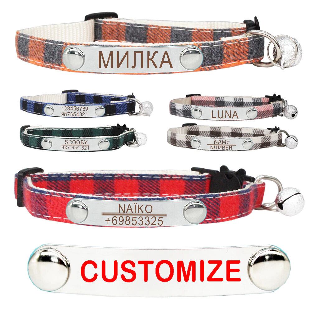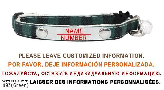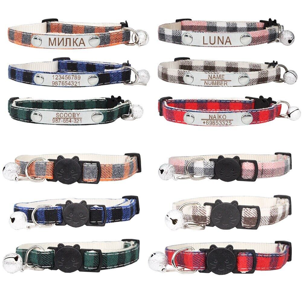 パーソナライズされたカスタマイズ格子縞の猫の首輪小型犬の首輪彫刻調整可能な安全バックルとベルペット子猫ネックレス