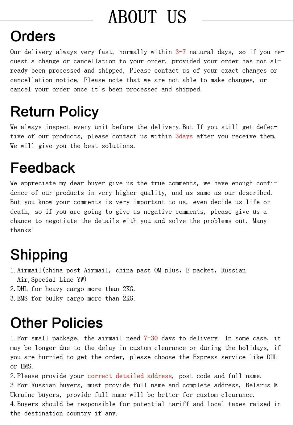 商品到着後のサイズ変更やカラーやイメージが違う等、 落札者様の都合での商品交換、返品は一切お受けしておりません。