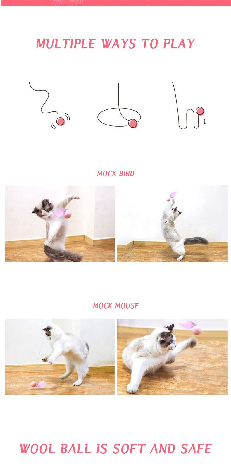 Cawayi 犬小屋ペット猫のおもちゃボール形状重力自動的に格納式面白い猫スティック羽妖精スティックペット用品 D2175