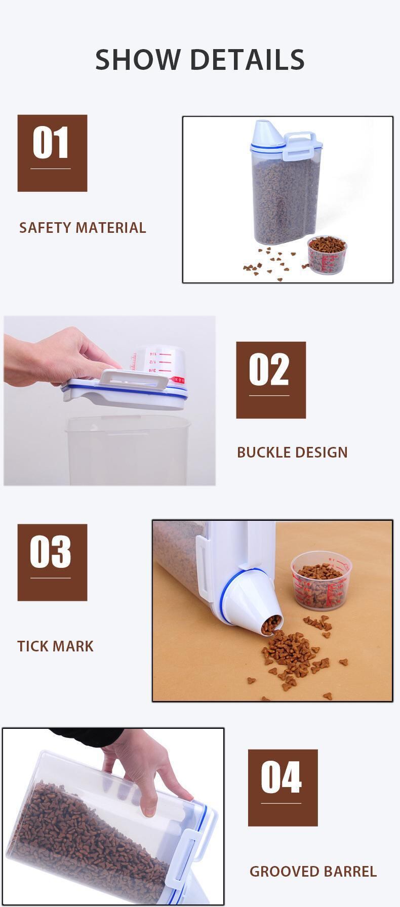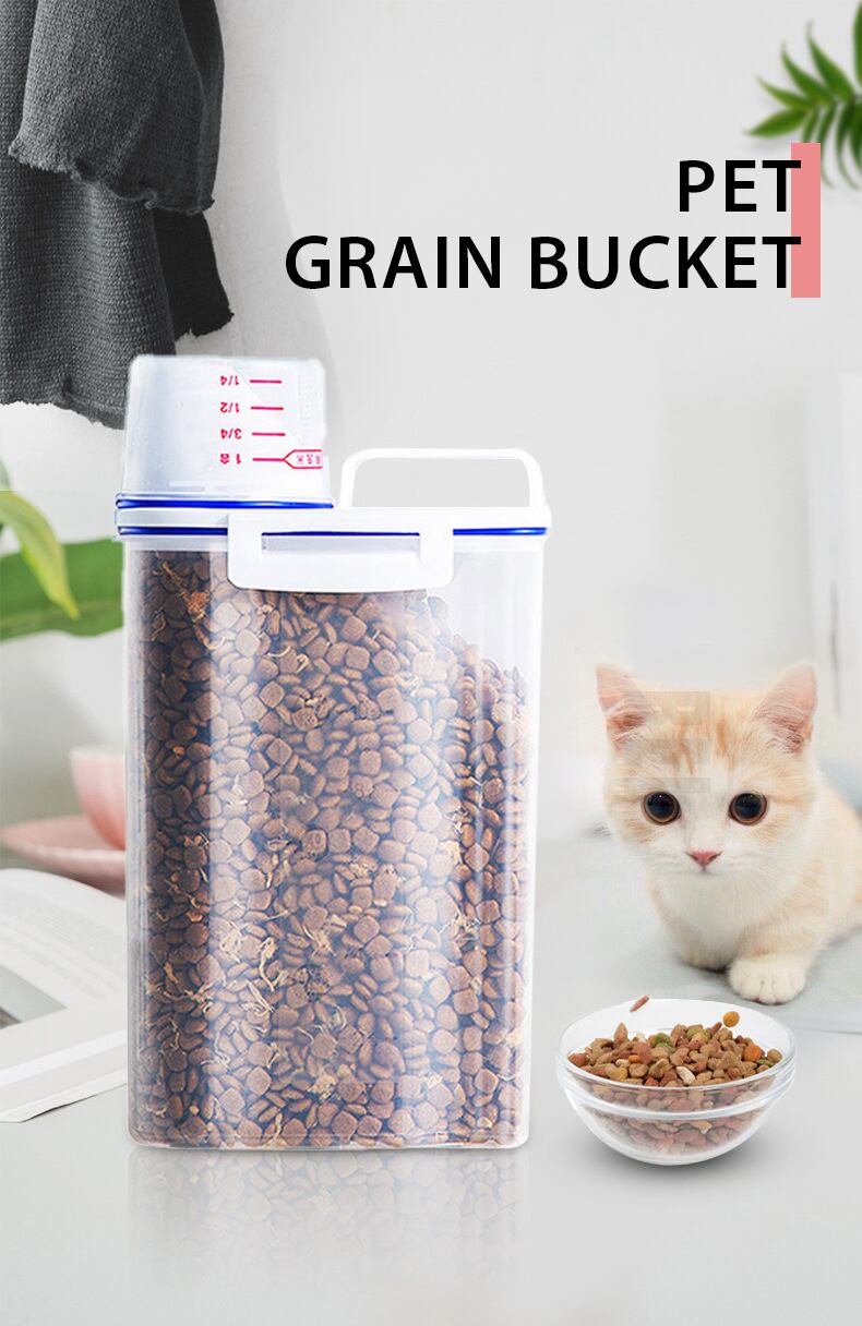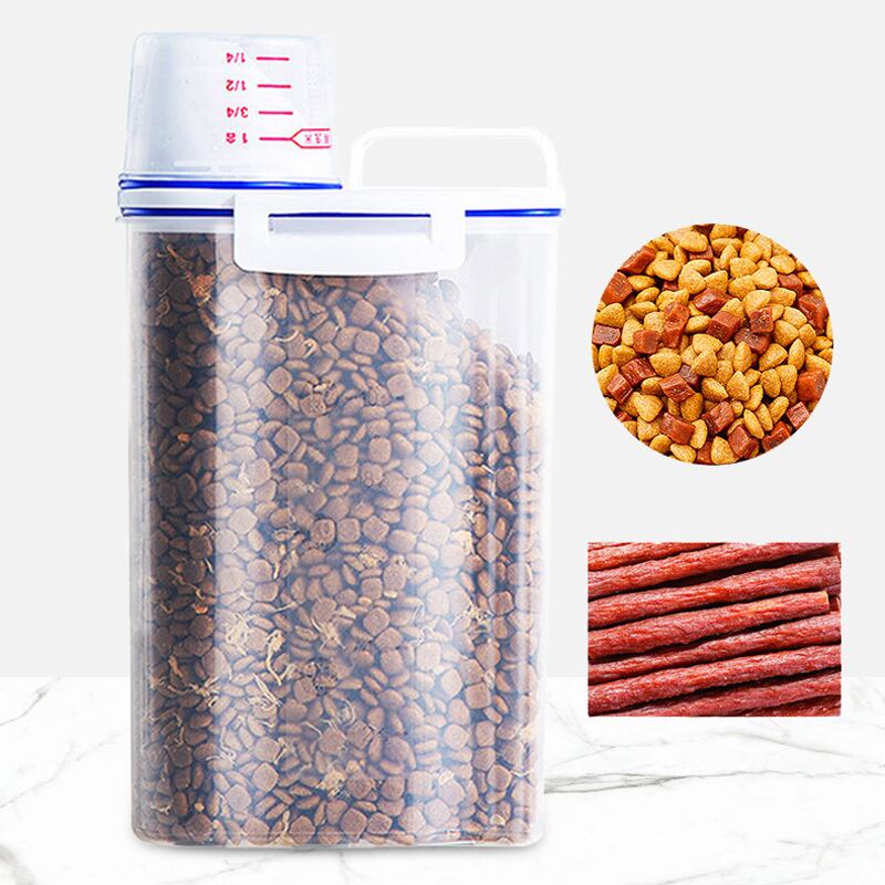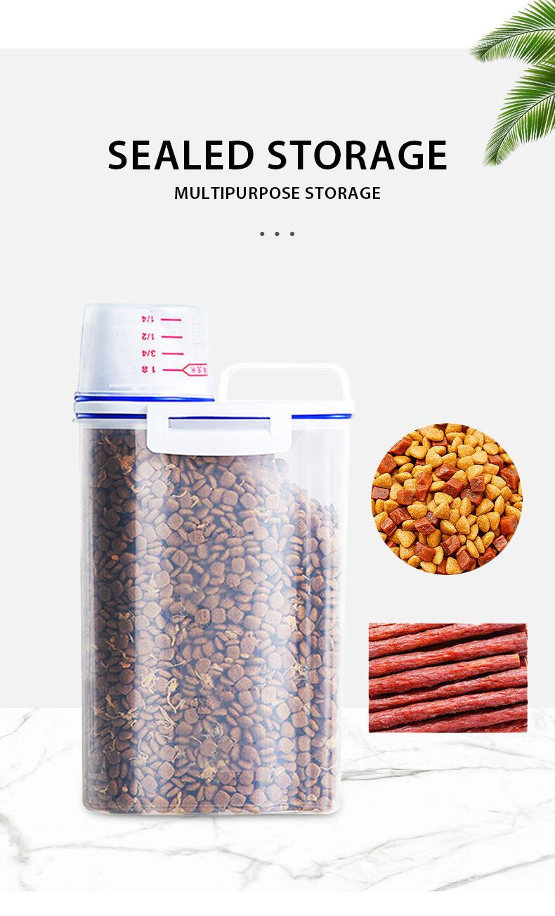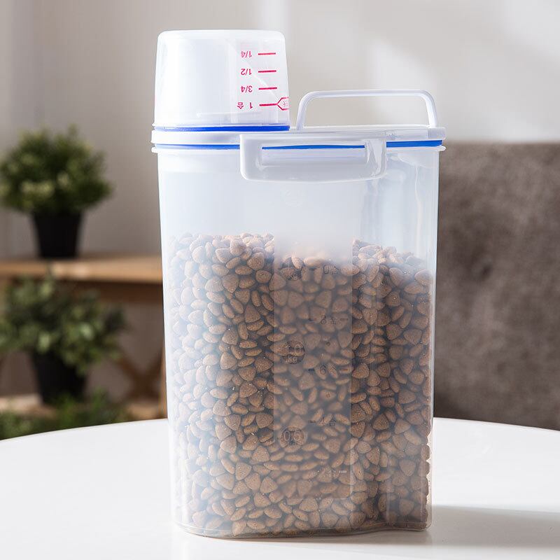 Cawayi 犬小屋 ドッグ キャット フード 1.75/3L ペール缶 プラスチック製 貯蔵タンク 計量カップ付き 容器 防湿 密封ジャー ペット用品