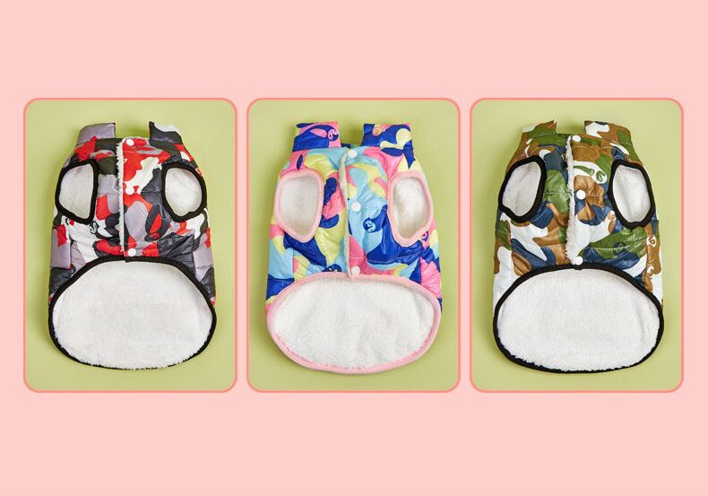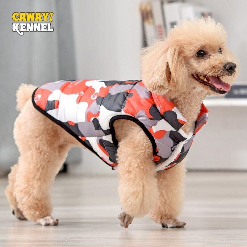 CAWAYI 犬小屋防水冬ペット犬ジャケット服暖かい綿プリントコートペット犬服フレンチブルドッグコートベスト