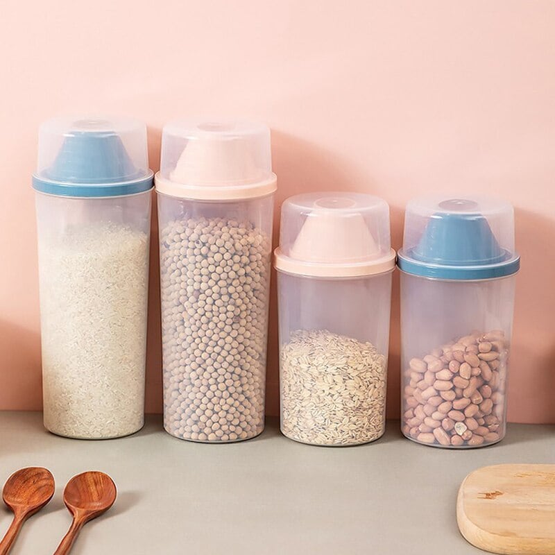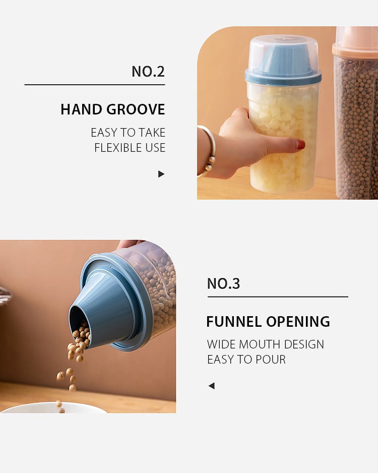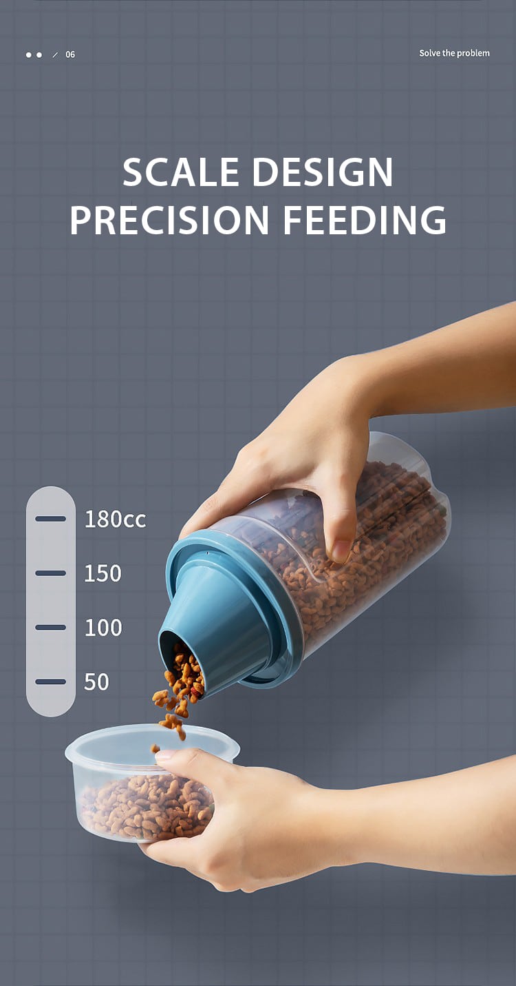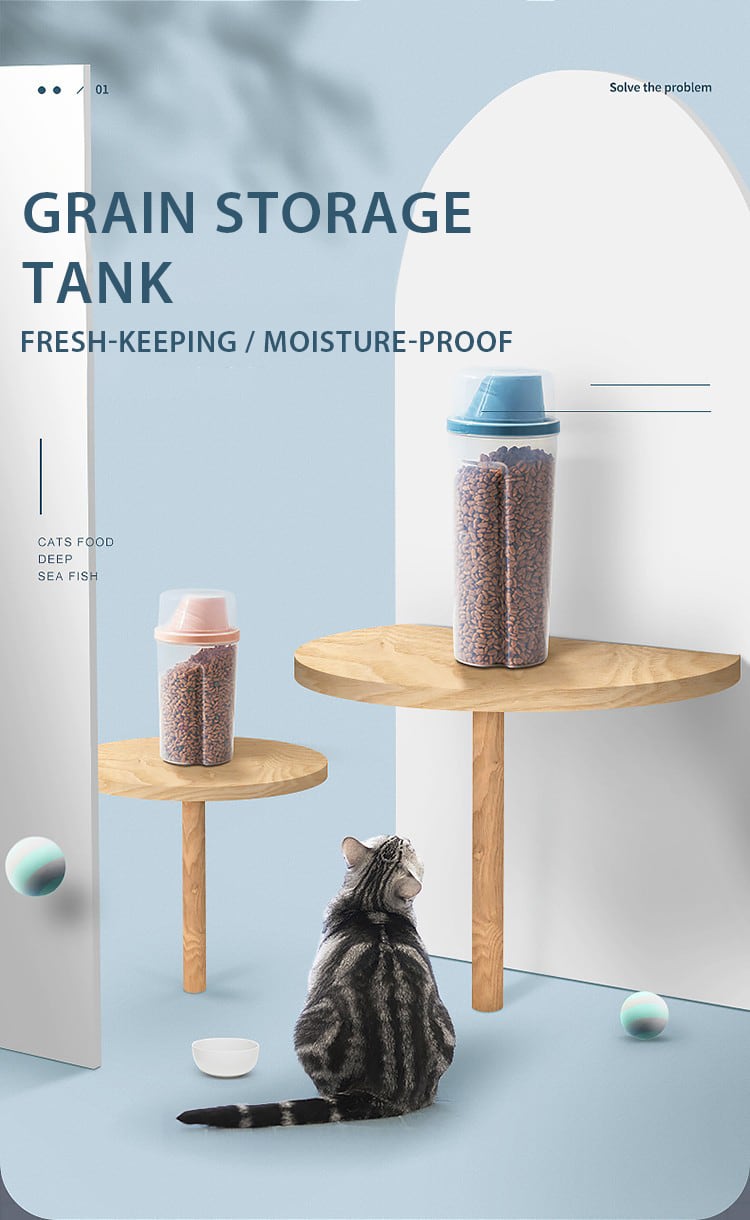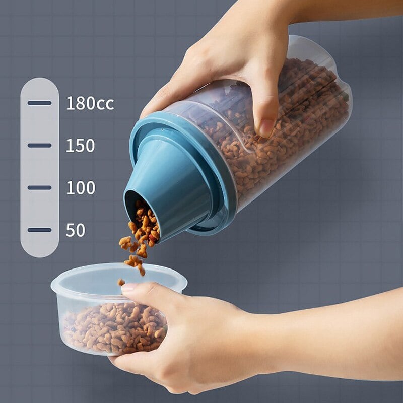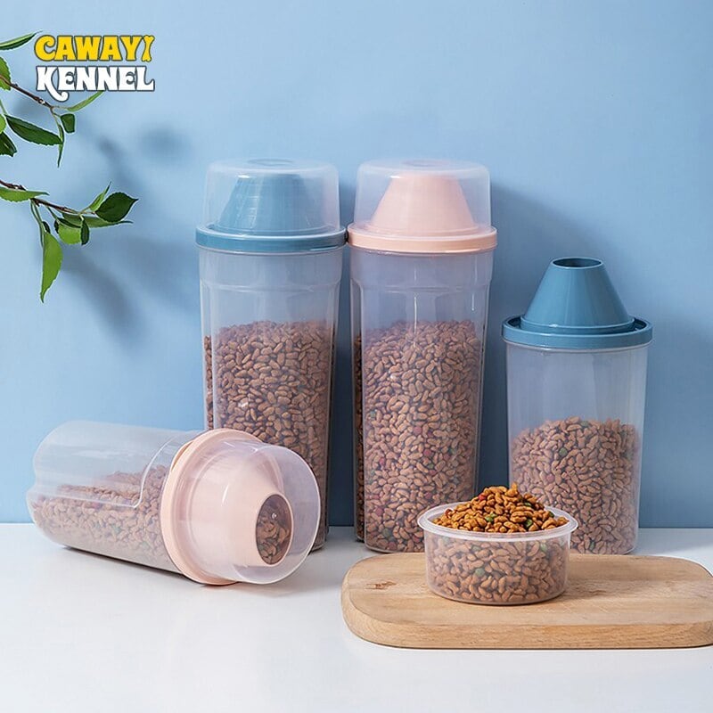 Cawayi ケンネル ドッグ キャット フード 1/1.5L ペール缶 プラスチック製 貯蔵タンク 計量カップ付き 容器 防湿 密封ジャー ペット用品
