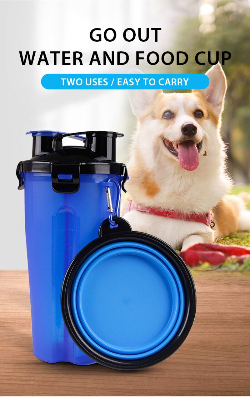 CAWAYI KENNEL 犬用ボウル 折りたたみ式 シリコン 2 in 1 水粒カップ ボウル ペットフードフィーダー 猫 ポータブル アウトドア 旅行 水ボトル
