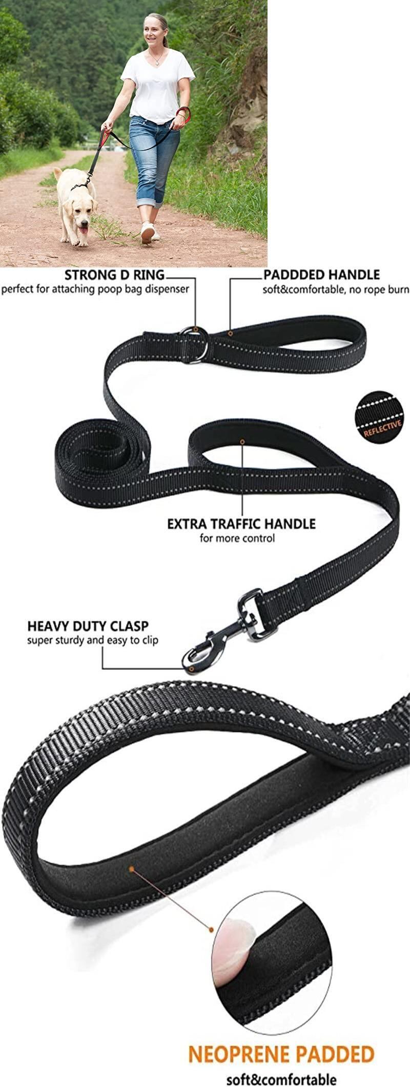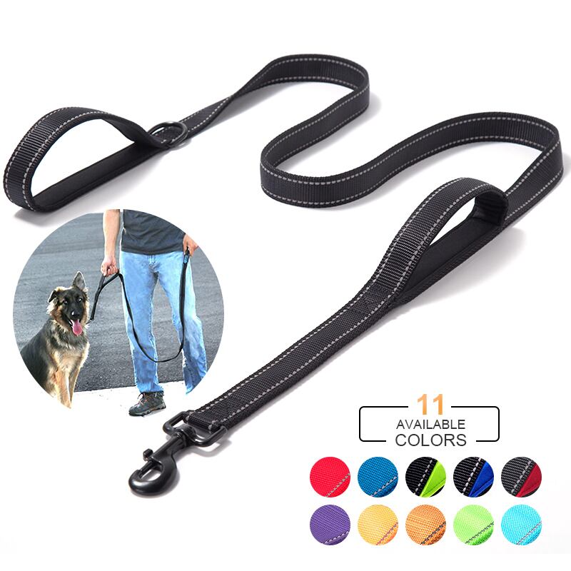 デュアルハンドル犬の鎖反射パッド入り犬の鎖ヘビーデューティリードロープ小型大型犬屋外トレーニングランニングペットの鎖